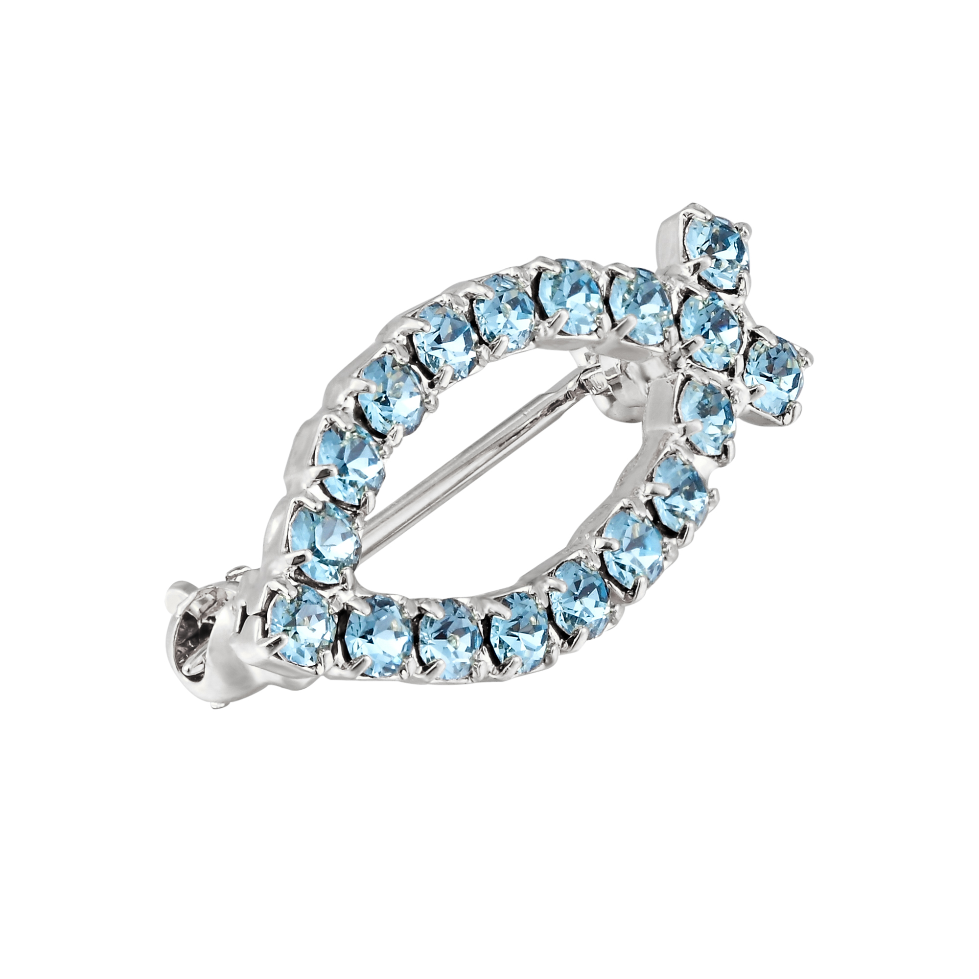 Aqua Swarovski crystal ichthys fish brooch. Available in bright silver plate, 18ct yellow gold plate or 18ct rose gold plate.