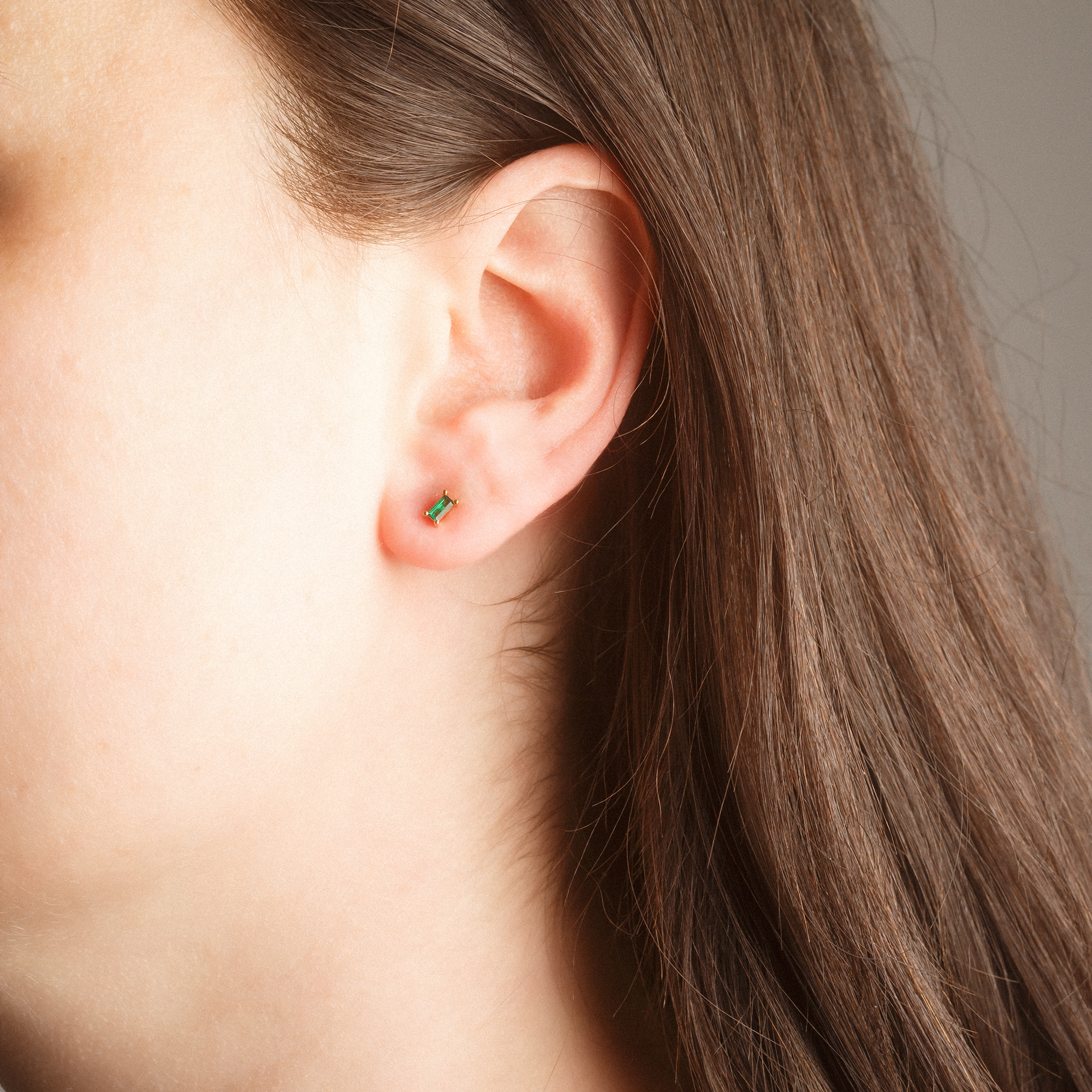 Indulge in the understated elegance of these Baguette Crystal Flatback Studs in a lush shade of green. Each stud is adorned with a meticulously cut baguette crystal – exuding a captivating brilliance and charm. Perfectly suited for both casual and formal occasions – these studs effortlessly elevate any outfit with their timeless appeal. Whether adding a pop of colour to your everyday attire or complementing an evening ensemble – these studs are a versatile and stylish addition to any jewellery collection.
