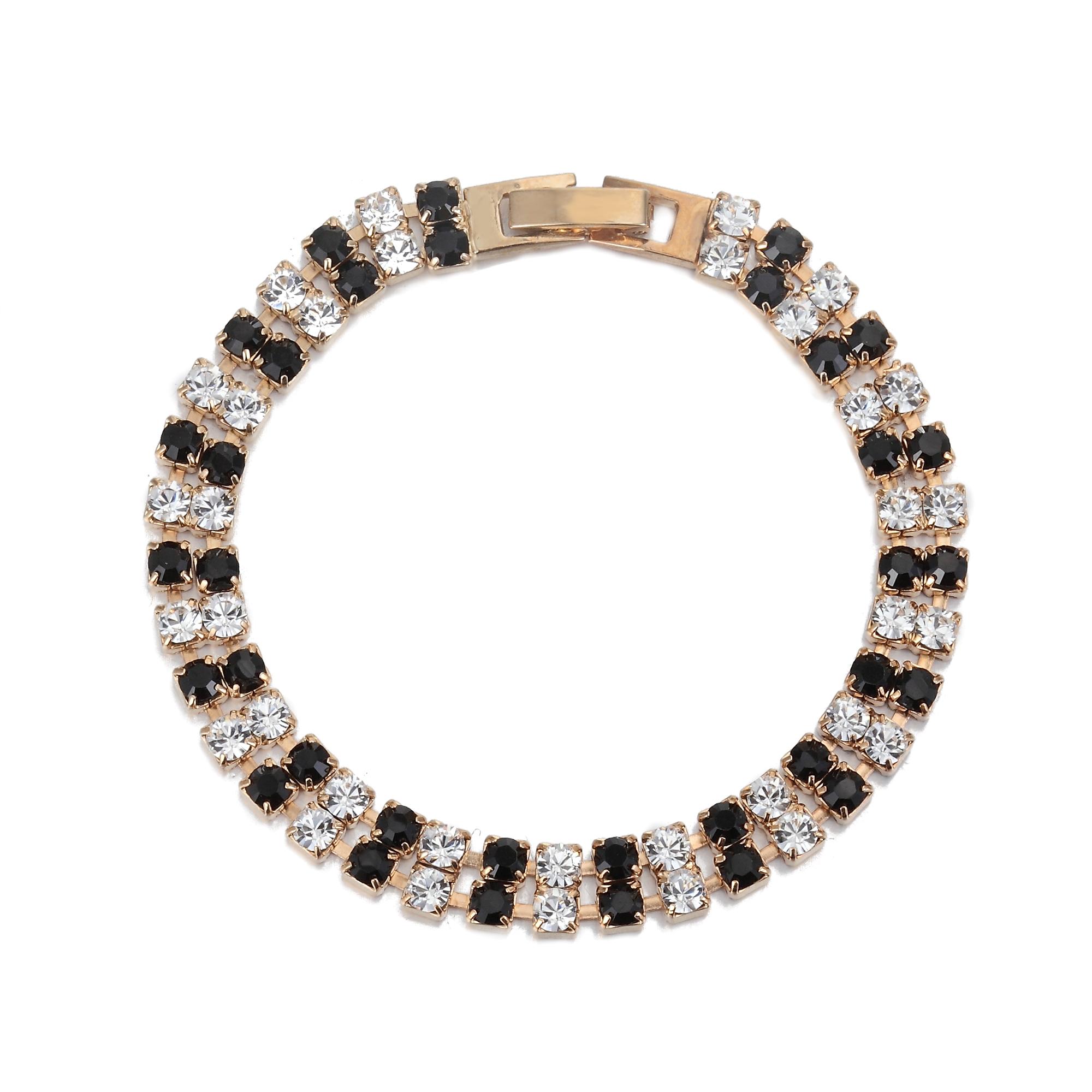 This double strand bracelet made with crystals will make all the boys and girls stop and square. This bracelet is available in Sterling Silver, or 18ct Gold plated over brass with crystals in multiple colour options – for you, who likes to colour coordinate.