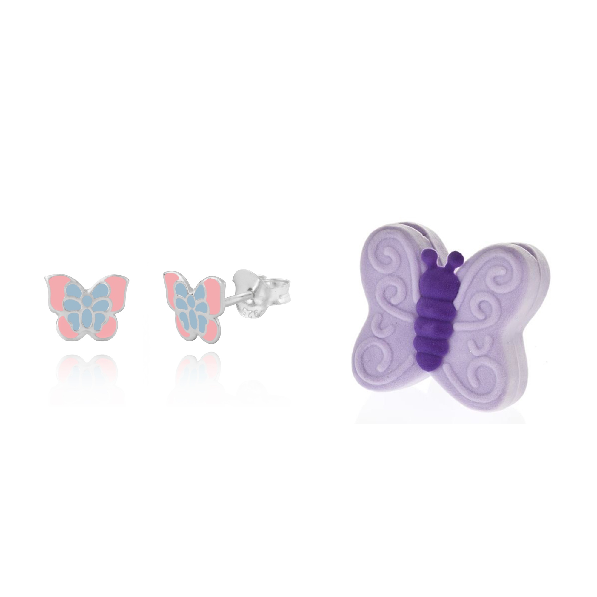 Children’s Sterling Silver Pink and Blue Enamel Butterfly Stud Earrings with Novelty Gift Box