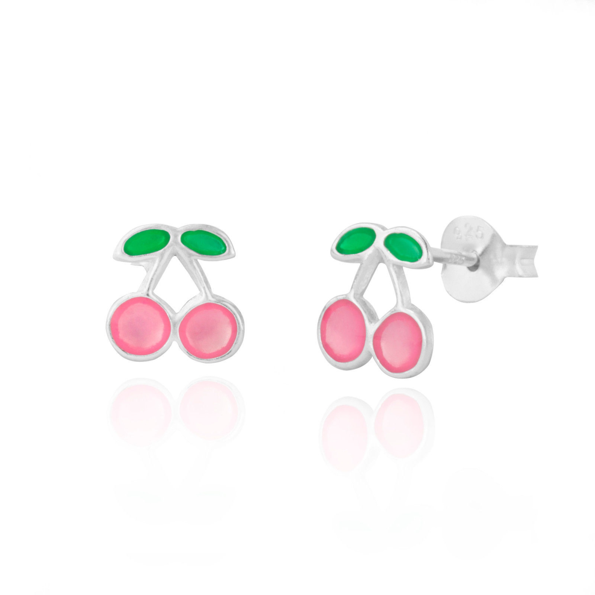 Children’s Sterling Silver Pink Enamel Cherry Stud Earrings
