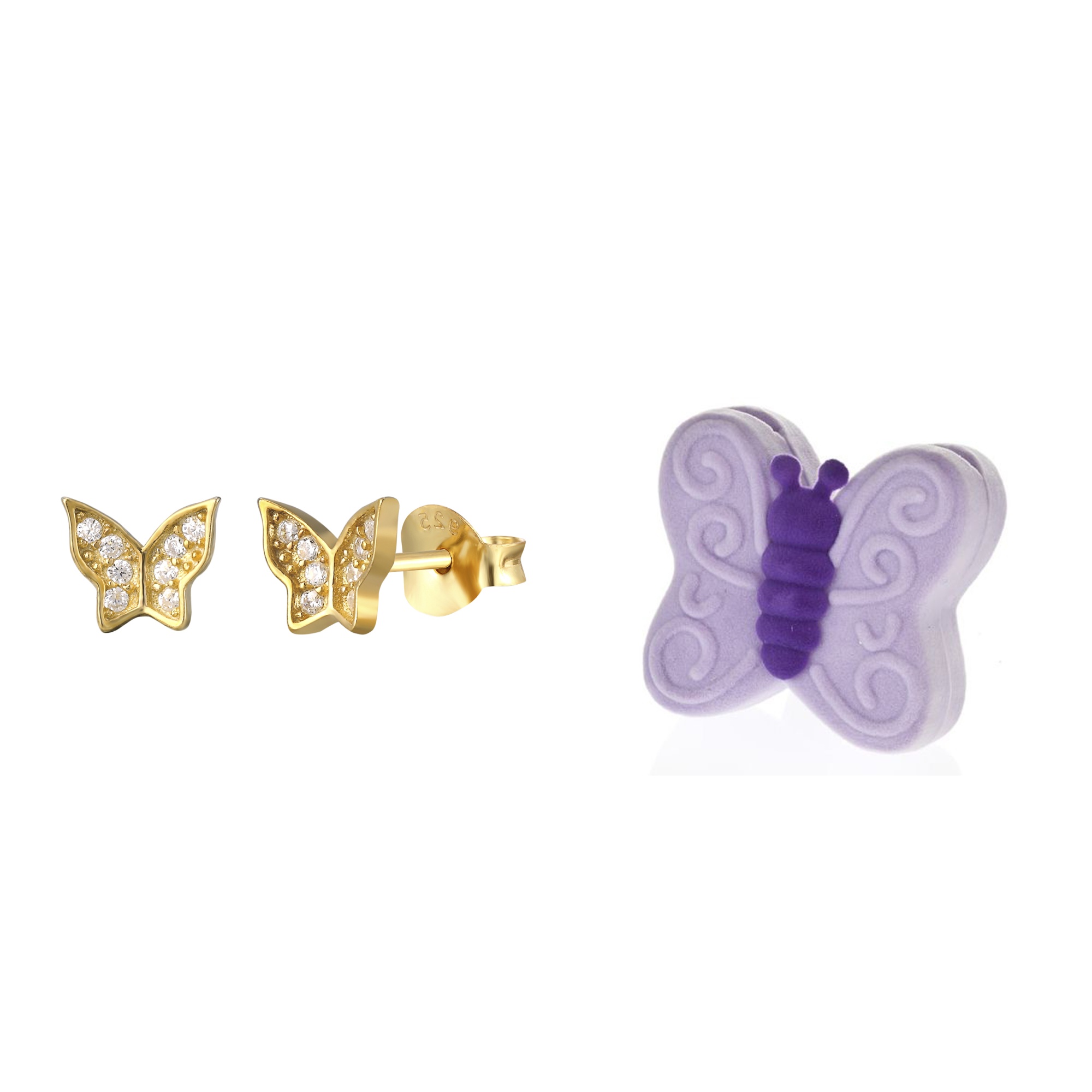 These adorable sparkling butterfly stud earrings are perfect for day to day wear. With white CZ’s set in sterling silver, these are a fun and cute accessory that goes with any look. Available in sterling silver, 18ct yellow gold plated over sterling silver or 18ct rose gold plated over sterling silver. These earrings will arrive in a decorative gift box, ready for any occasion.