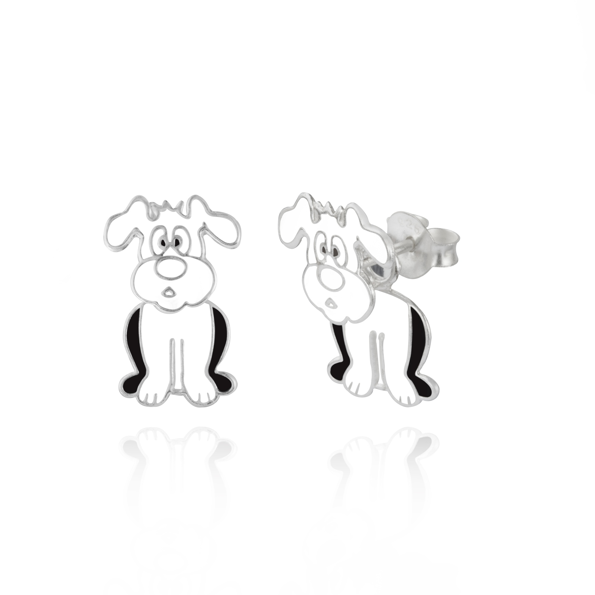 Children’s Sterling Silver White Enamel Puppy Dog Drop Stud Earrings