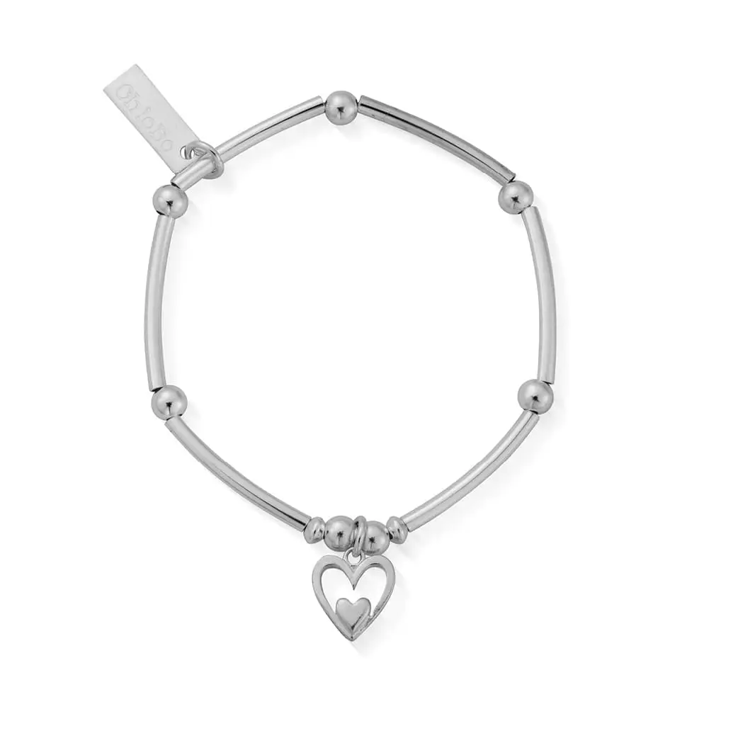ChloBo Childrens Mini Noodle Ball Heart In Heart Bracelet Silver Finish
