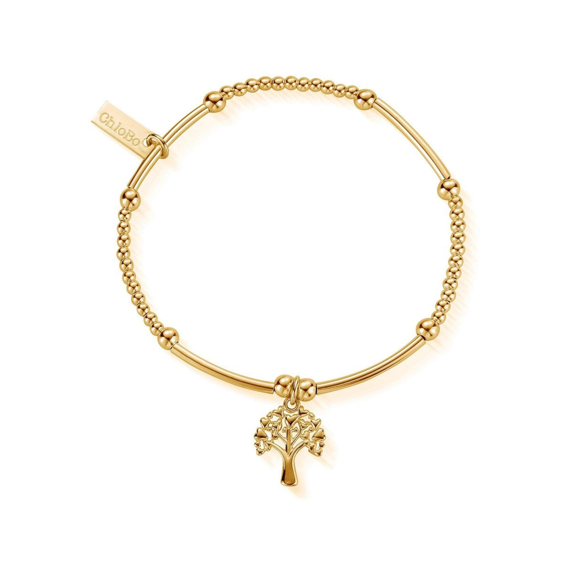 ChloBo introduces this beautiful gold plated tree of life themed bracelet made from sterling silver with mini noodles, 2.5mm and 4mm beads symbolising harmony and balance.