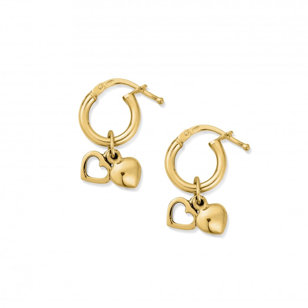 A dainty pair of 925 sterling silver small hoop earrings decorated with a the popular double heart charm. A solid heart charm is paired alongside an open heart charm, creating one of ChloBo’s bestselling designs. ChloBo’s heart charm is worn as a symbol of love. A super sweet addition to your everyday look.