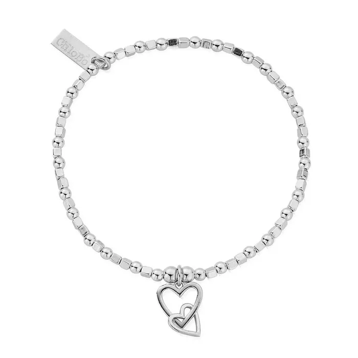 • Represent love and compassion with the carefully designed Interlocking Love Heart bracelet. This 925 sterling silver piece with either rose gold or gold plated textured bead combination is handcrafted from 2X2 fancy cube and classic 3mm ChloBo beads. Wear on its own for a fresh and dainty look or add to your stack to build a style statement with meaning.