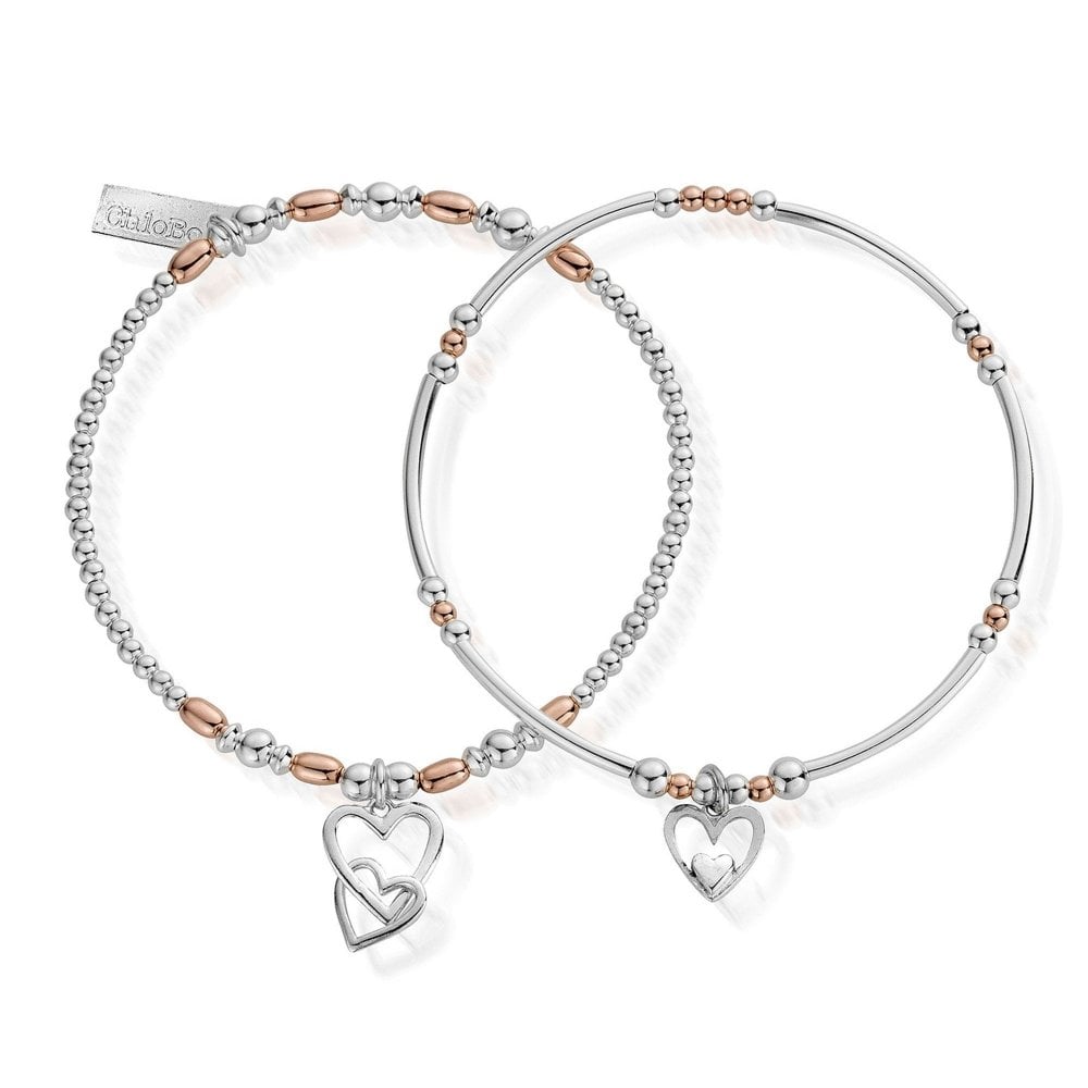 Represent love with this precious pairing of 925 sterling silver bracelets, featuring a blend of multi-faceted beads and entwined heart designs. Gift this Double Devotion set of two to represent female compassion or add this passionate pair to your growing ChloBo stack.