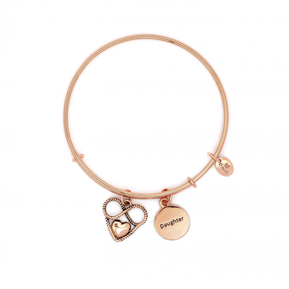 Infinite love, the bond with a daughter is unmatched. Wear this Daughter bangle to show proud, love, and devotion to this strong family connection. In a rose gold plated finish.