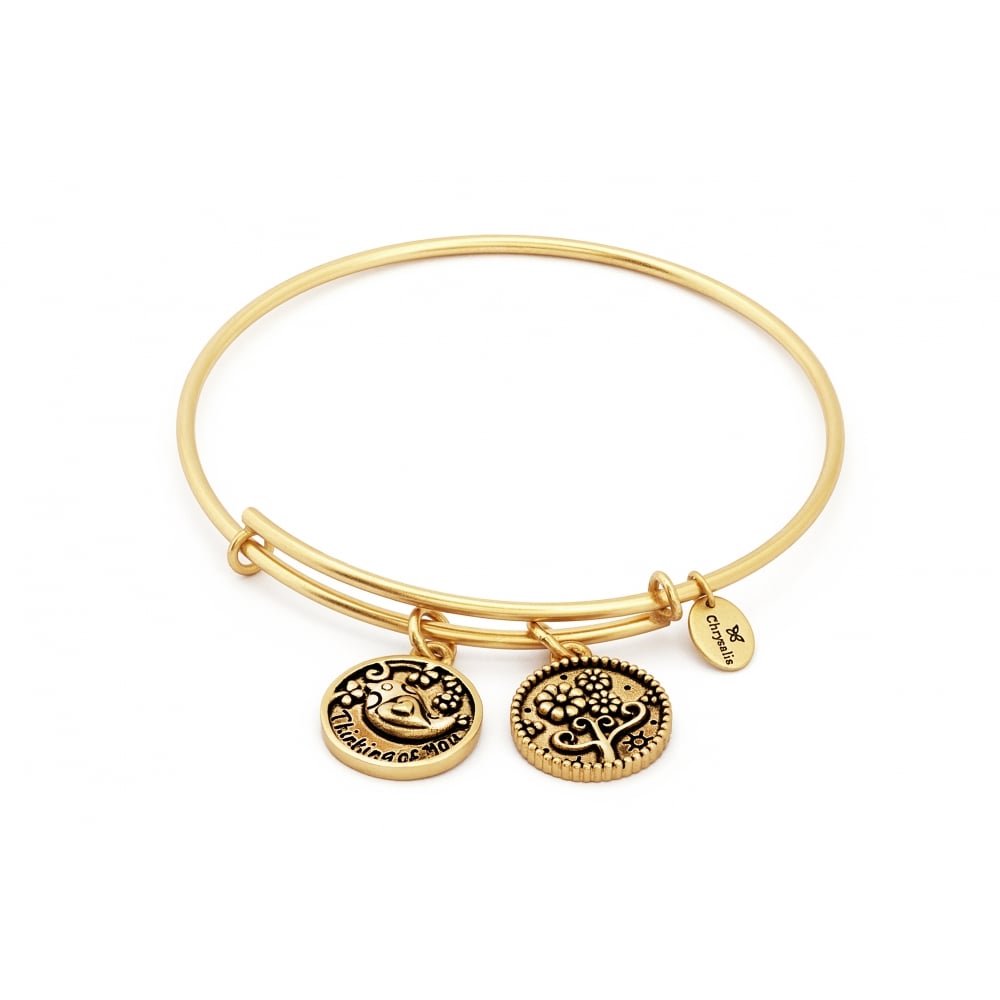 The little bird flies high, seeing the world from new perspective. Whether times are good or bad, wear your Thinking of You bangle and know that someone is watching over you. Available in a gold, rose or silver finish.