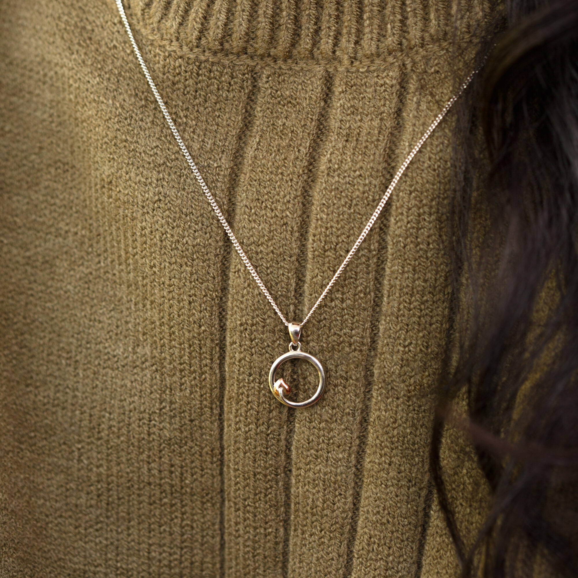 Our iconic Tree of Life collection symbolises the relationship of all life on Earth. A combination of berries, leaves and vines represent new life forms that intertwine and evolve from the old, creating ever more beautiful designs with an elegant and organic style. The sterling silver and 9ct rose gold Tree of Life circle pendant express the infinite power and beautiful continuity of nature. Contains rare Welsh gold – the Gold of Royalty for over 100 years. Available on a 22 inch (55.8cm) chain that can also be worn at 20 inch (50.8cm) and 18 inch (46cm).