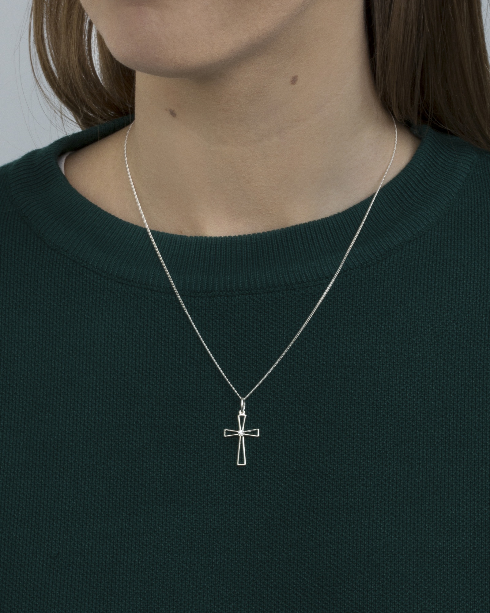 The cross pendant measures 18mm x 16mm
