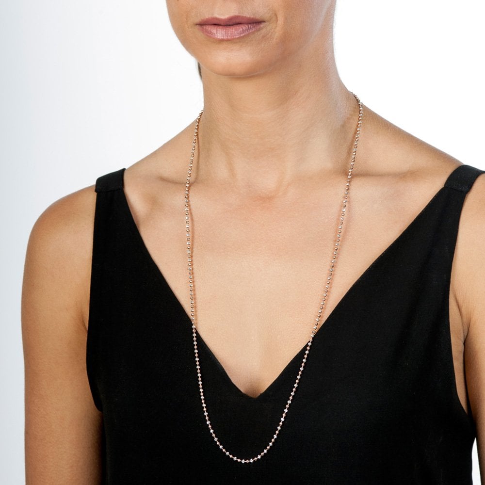 Chains, The Emozioni chain is an integral element of your collection. From classic silver belcher chain to daring popcorn chains, Emozioni presents a luxurious selection to perfectly compliment your most-loved outfits. This is the 30 inch bead chain made from sterling silver with a rose gold plating.