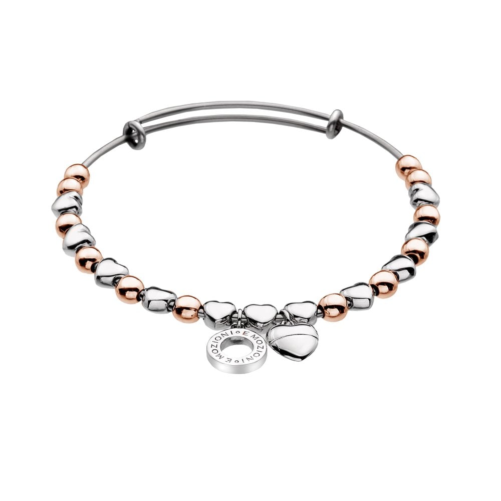 Emozioni Rose Gold Silver Two Tone Heart Bangle