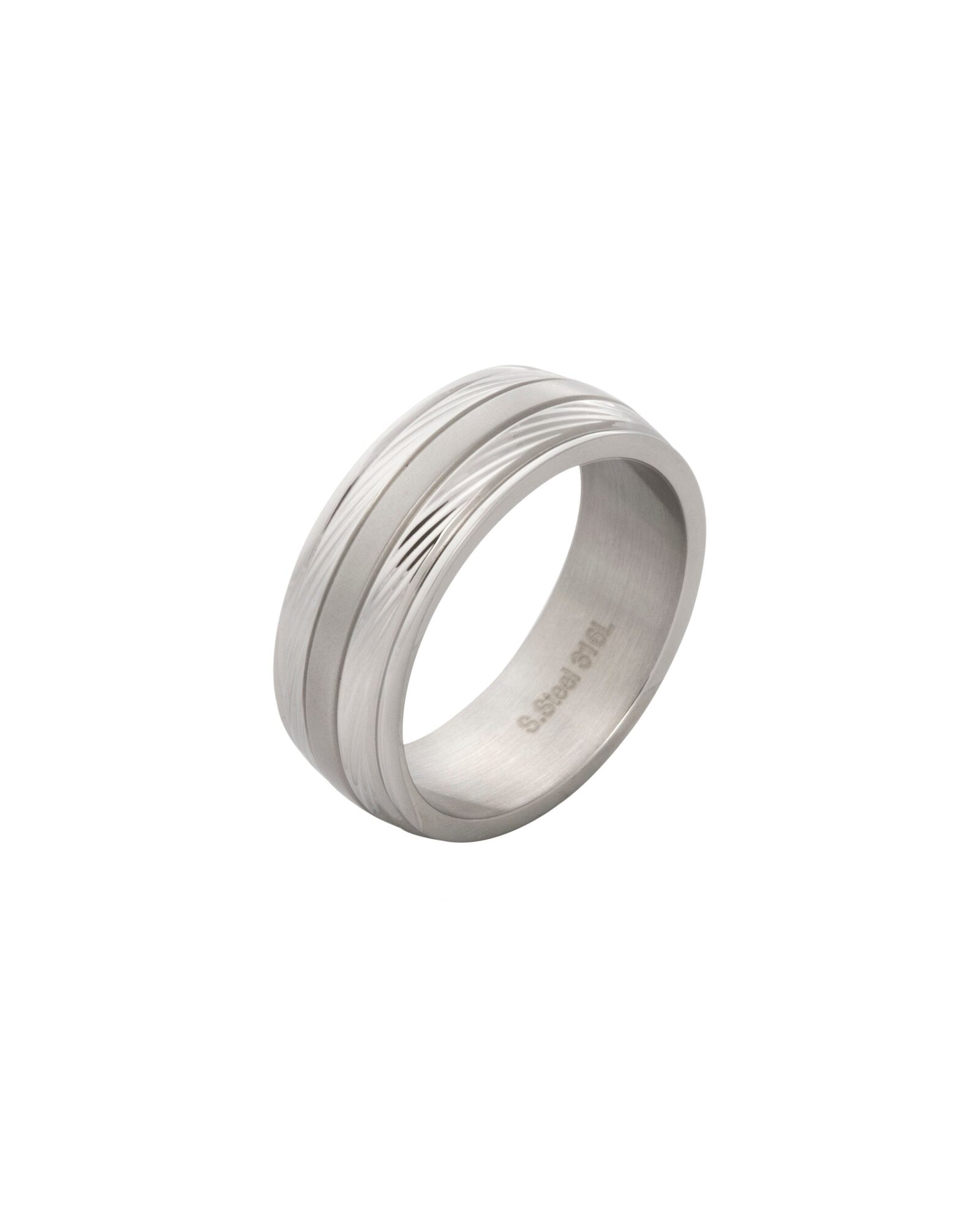 Make a statement with this stainless steel grooved plain band. The design is modern and comfortable to wear with intricate etched detailing grooved in to the band, with stainless steel being a versatile precious metal that is enduring whilst looking stylish on. Measuring 8mm high with a 3mm thickness, this ring will arrive in a gift box ready for someone special. Available in UK sizes U, R and X.