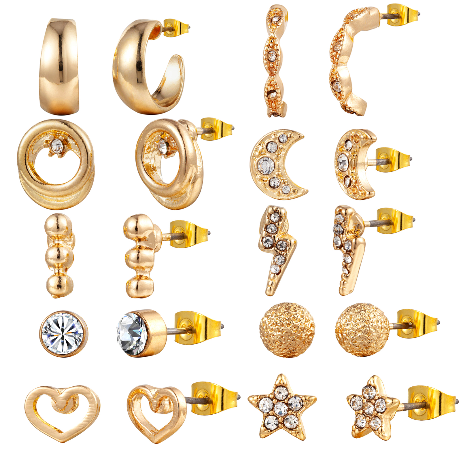 Find a pair of earrings for every occasion with this 10 pack of earrings. All in a gold plated finish, you can find an accessory to suit every style.