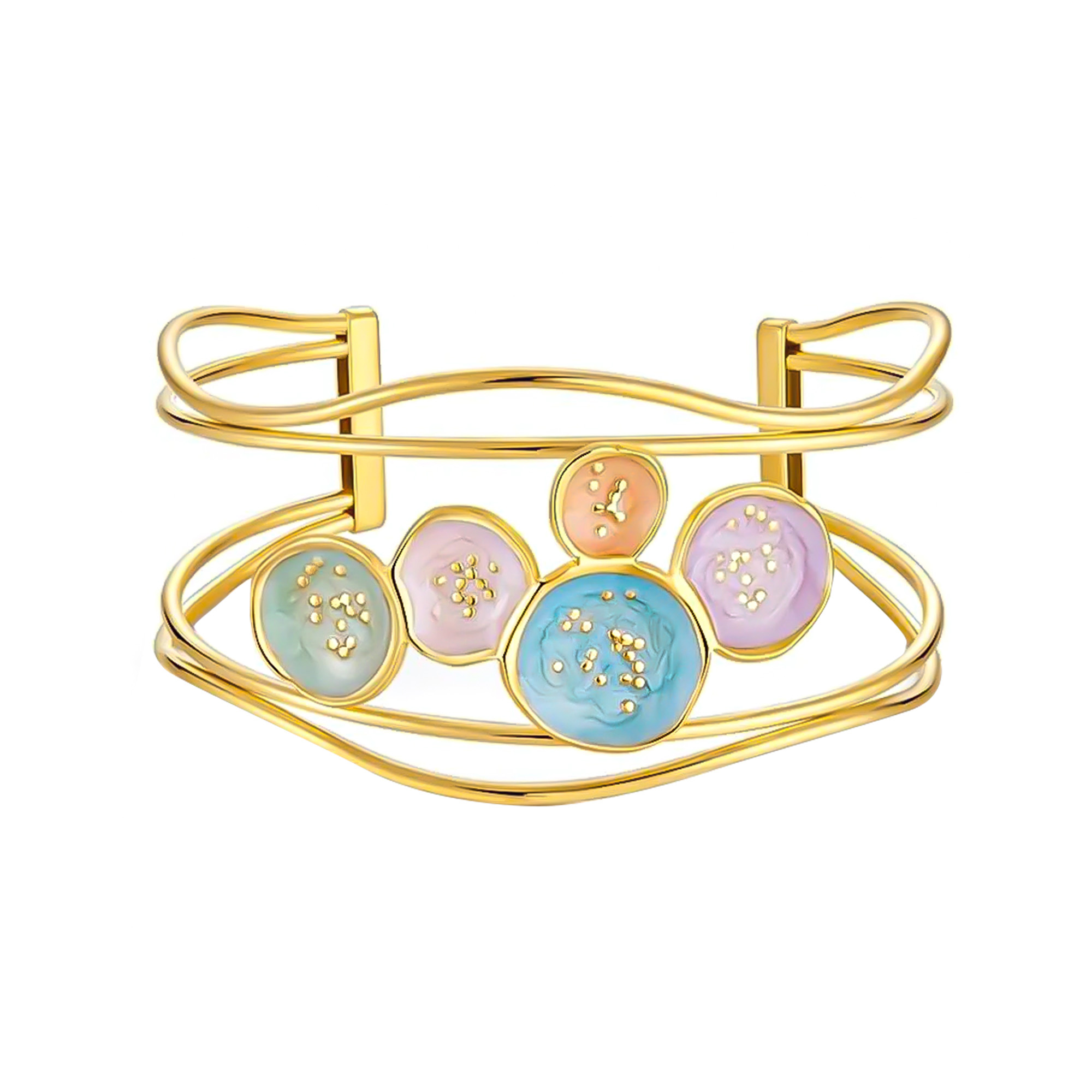 This vibrant enamel cuff bangle features a gold-plated finish and a colorful design, perfect for making a bold fashion statement. Stylish and versatile, it adds a playful touch to any outfit and is ideal for both casual and evening wear. A must-have accessory for those who love unique, eye-catching jewellery.