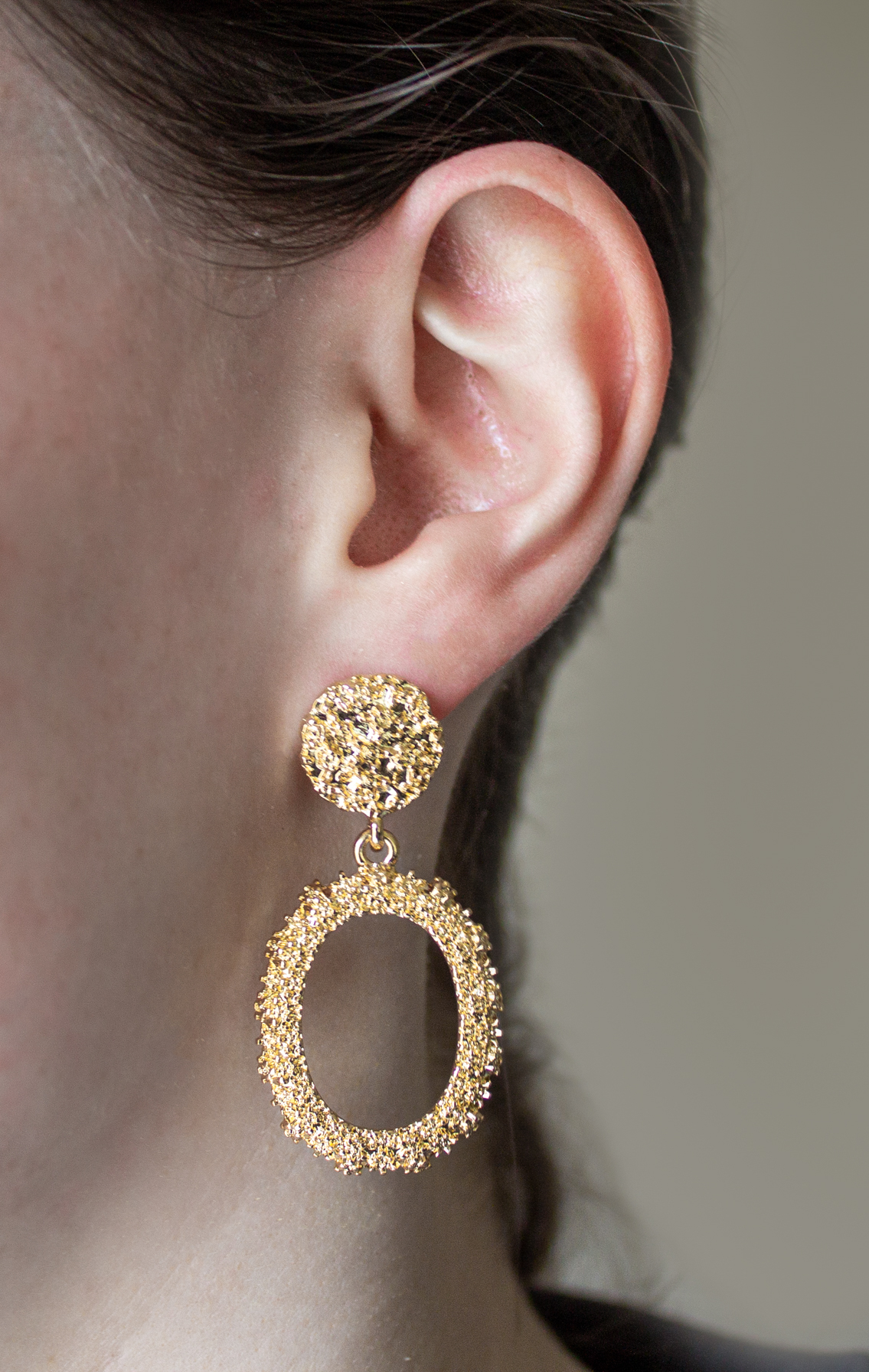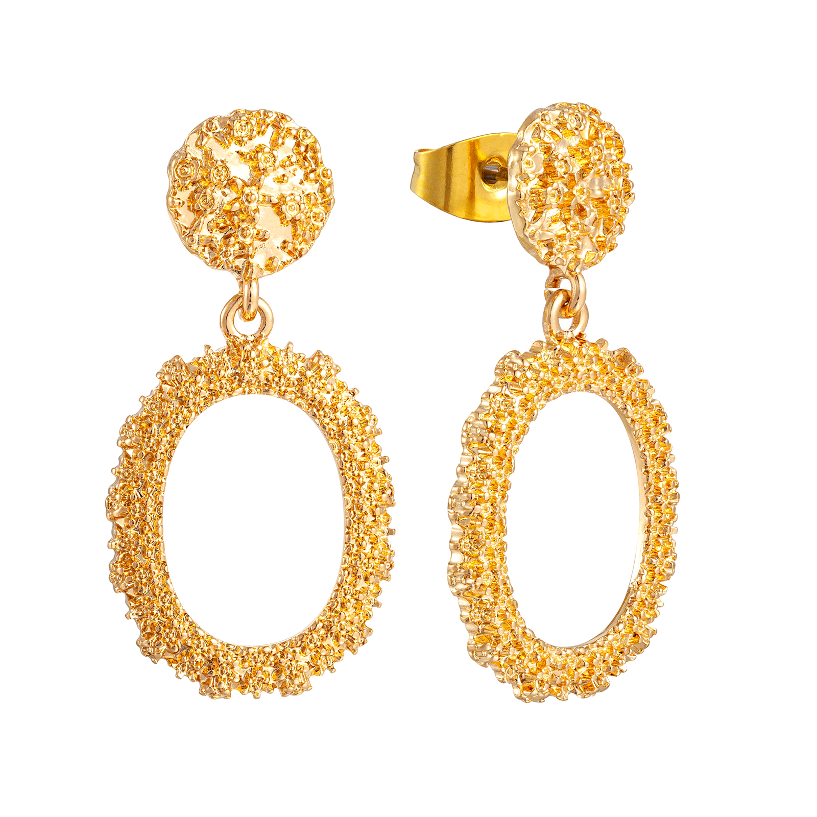 Make a statement with these doorknocker style drop earrings. In a gold plated finish with a butterfly back fastening, these are a must have accessory for any night out