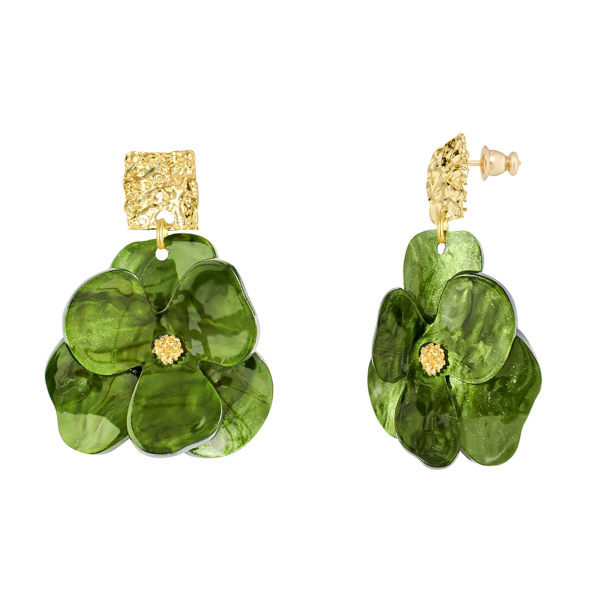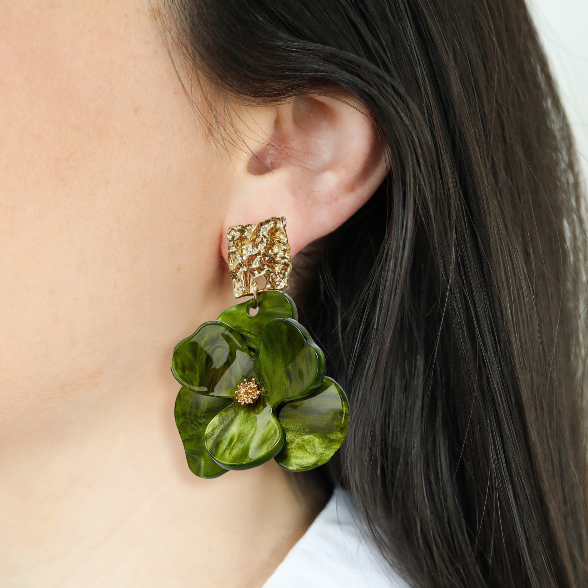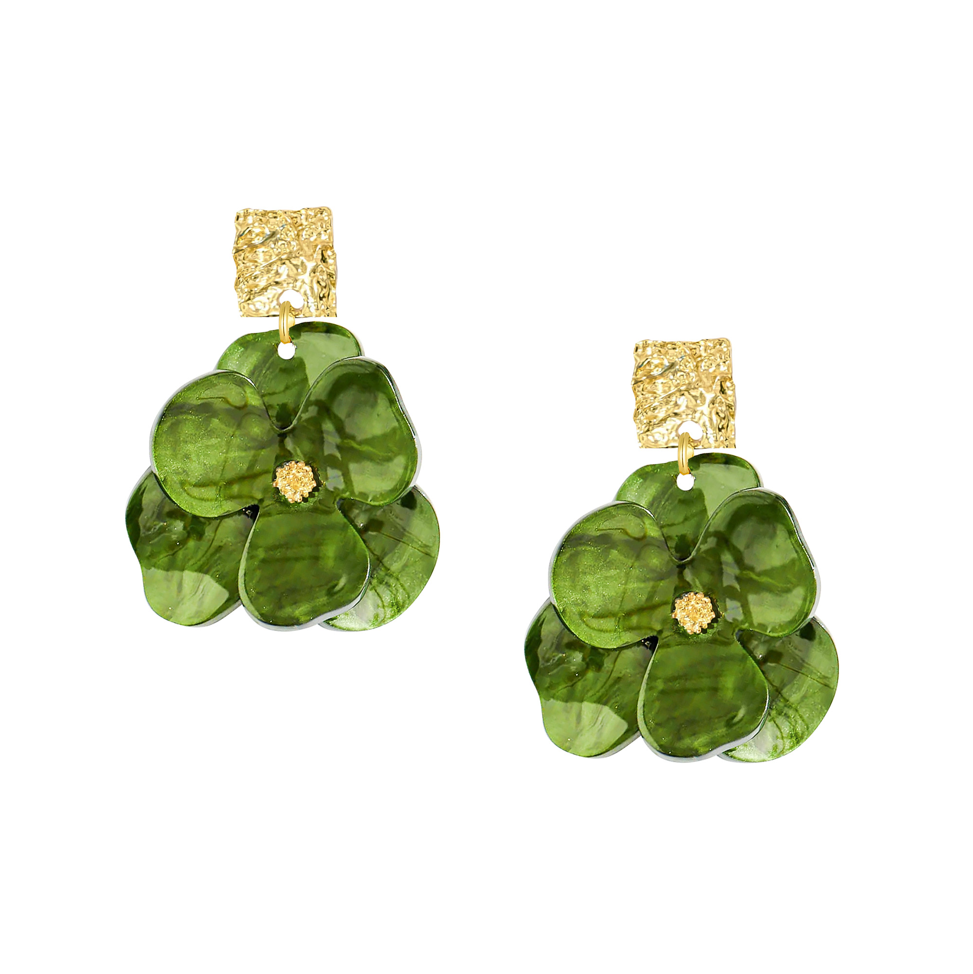 Brighten up your jewellery collection with these Gold-Plated Green Flower Drop Earrings. Featuring a delicate floral design and vibrant green detailing, they add a fresh and feminine touch to any outfit. Perfect for both everyday wear and special occasions, these earrings combine playful charm with timeless elegance.