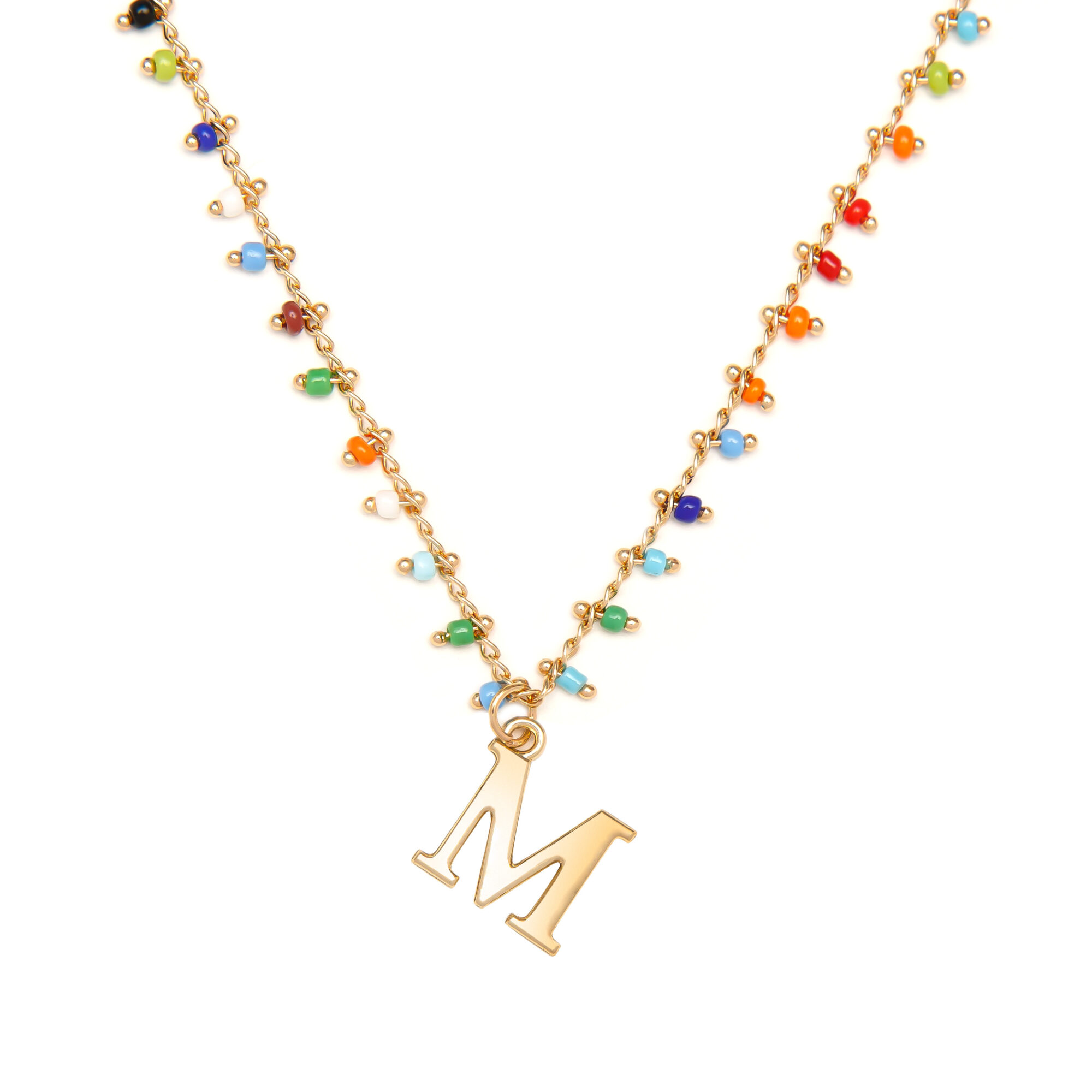 The Gold rainbow crystal letter charm necklace is a vibrant and personalised piece of jewellery that combines playful colors with a touch of individuality. This necklace features a dainty gold chain adorned with a letter-shaped charm, customizable with the initial of your choice. What makes this necklace unique and eye-catching is the incorporation of rainbow-colored crystals that adorn the letter charm.