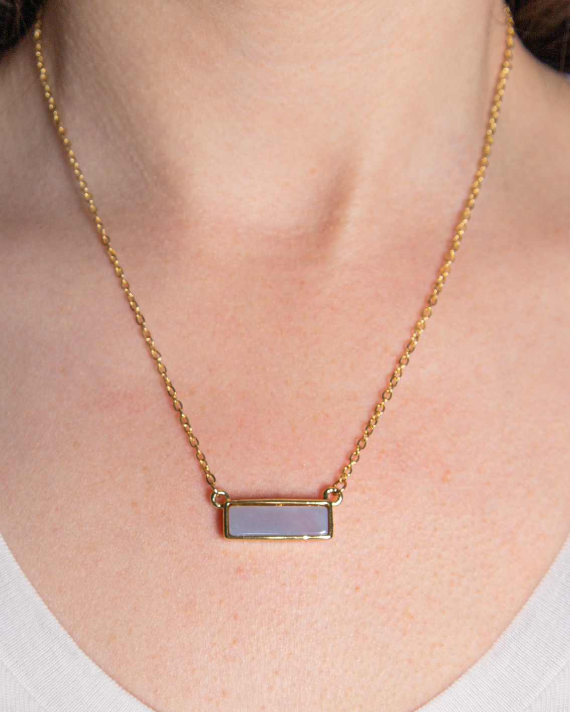 This stunning bar necklace with smokey quartz detailing is a gorgeous piece that is perfect for layering up with other necklaces in your collection. In a gold plated finish, this is a classic piece with a modern upgrade.