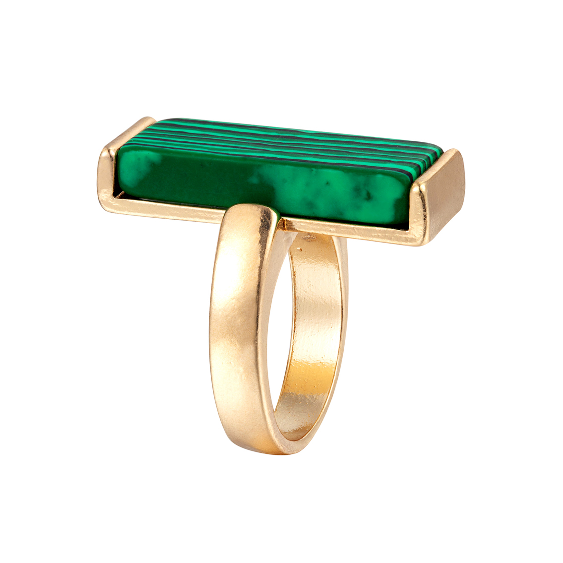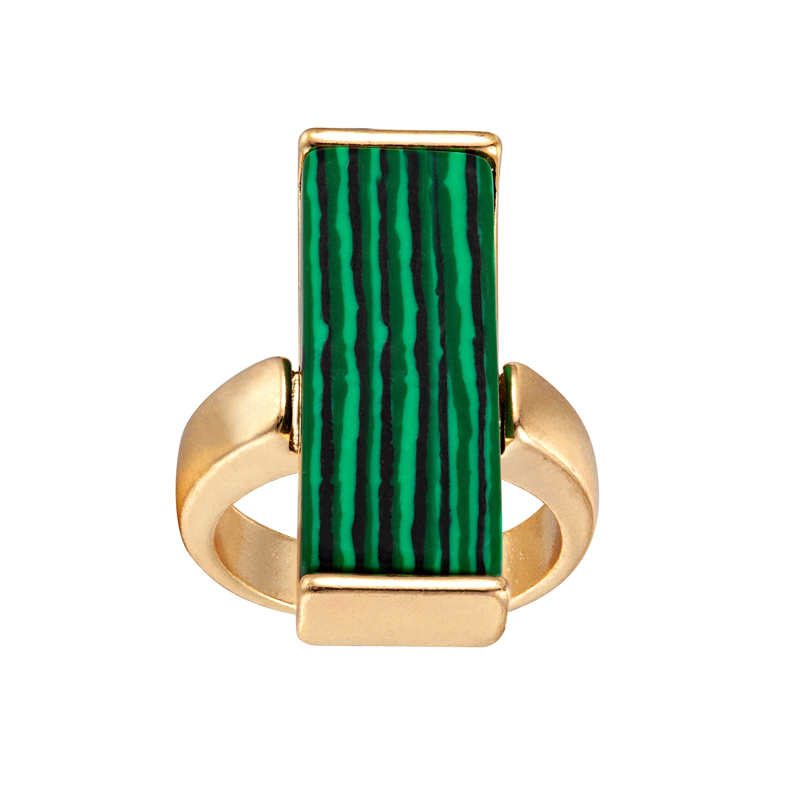 Gold Plated Rectangle Malachite Statement Ring – Size J – T