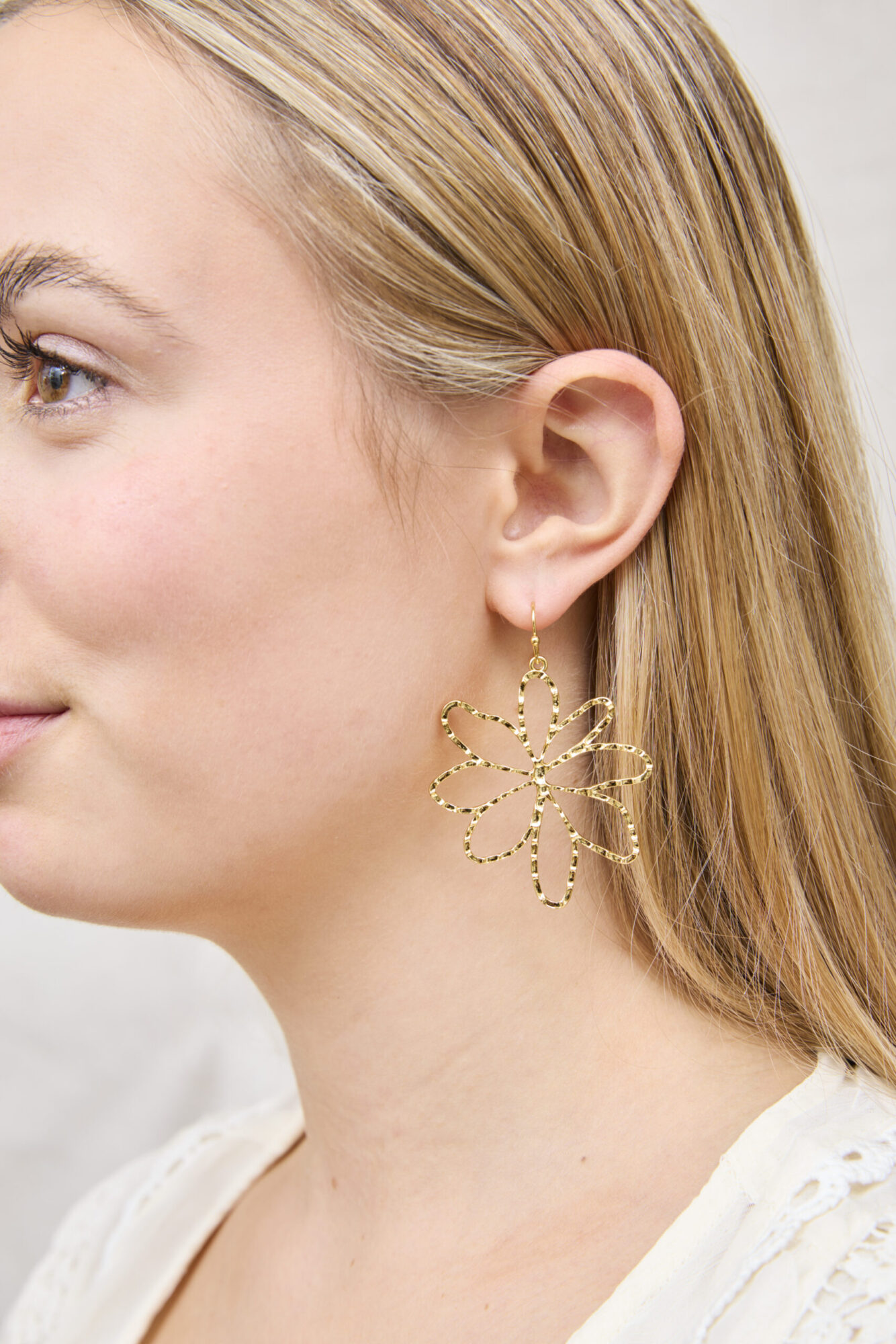 Gold Plated Statement Floral Dropper Earrings