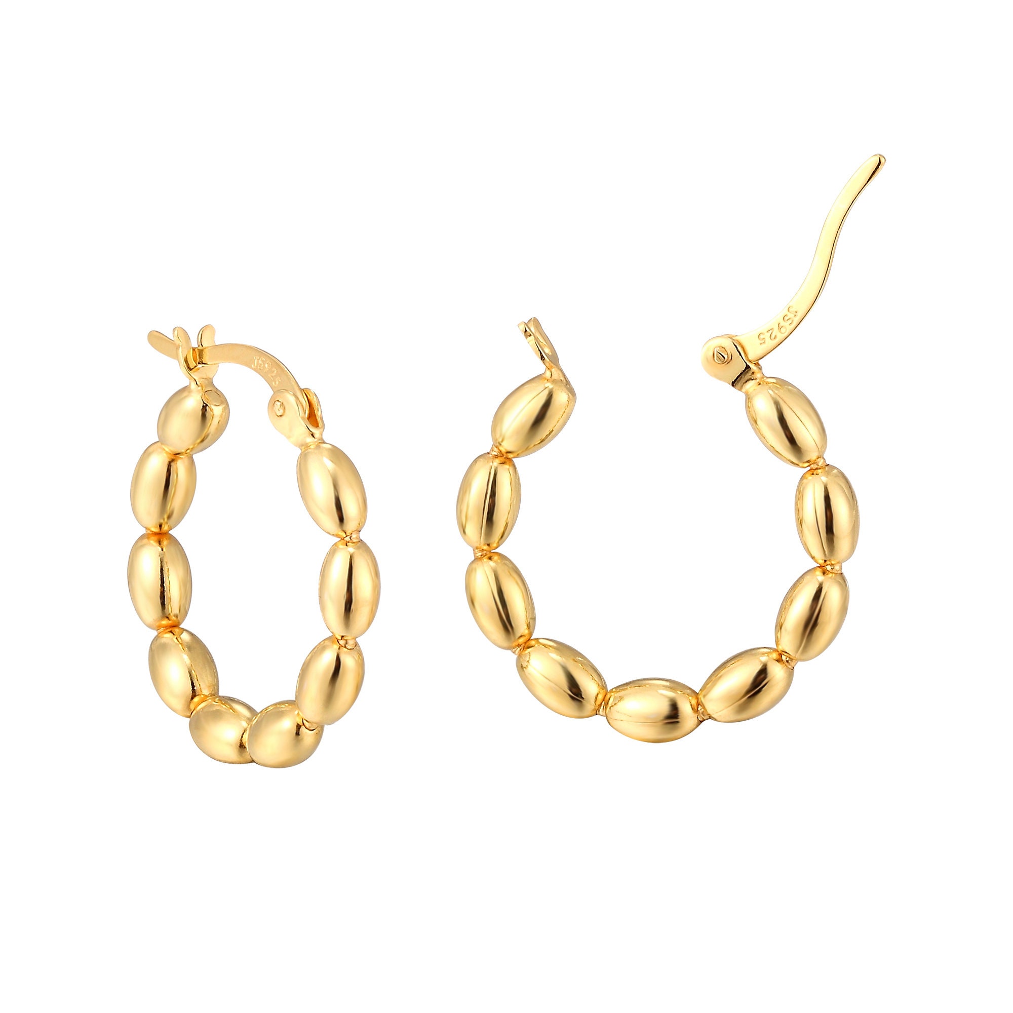 These stunning small beaded creole earrings are a great accessory for everyday. Any jewellery lover will adore these as a gift all year round. Made from 18ct gold plated sterling silver, these come with an elegant gift box that makes them ready for gifting.Measures 21.5mm (h) x 20mm (w).Please note that if you are ordering more than one item that they will arrive in only one gift box. If you need more than one gift box then please message us and let us know!