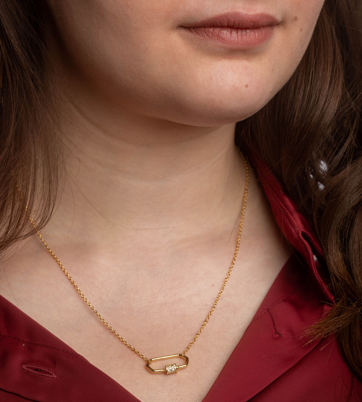 This necklace is crafted from high quality .925 sterling silver and finished with a rich gold plating. This ensures a luxurious, high shine glow that is also safe for sensitive skin. The sturdy links and secure hinge make it a durable choice for daily wear or special events.