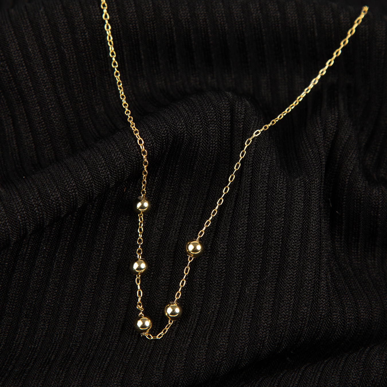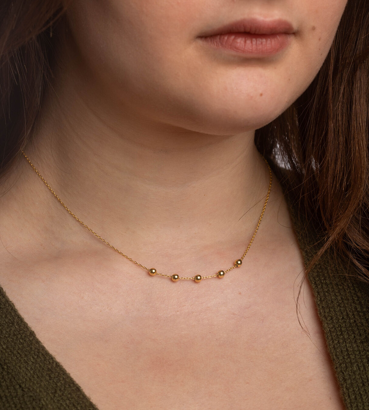 Add a modern, playful touch to your jewellery collection with our moveable bead necklace. This stylish piece features polished gold beads that slide along a delicate chain. You can position the beads together for a bold look or space them out for a minimalist feel.