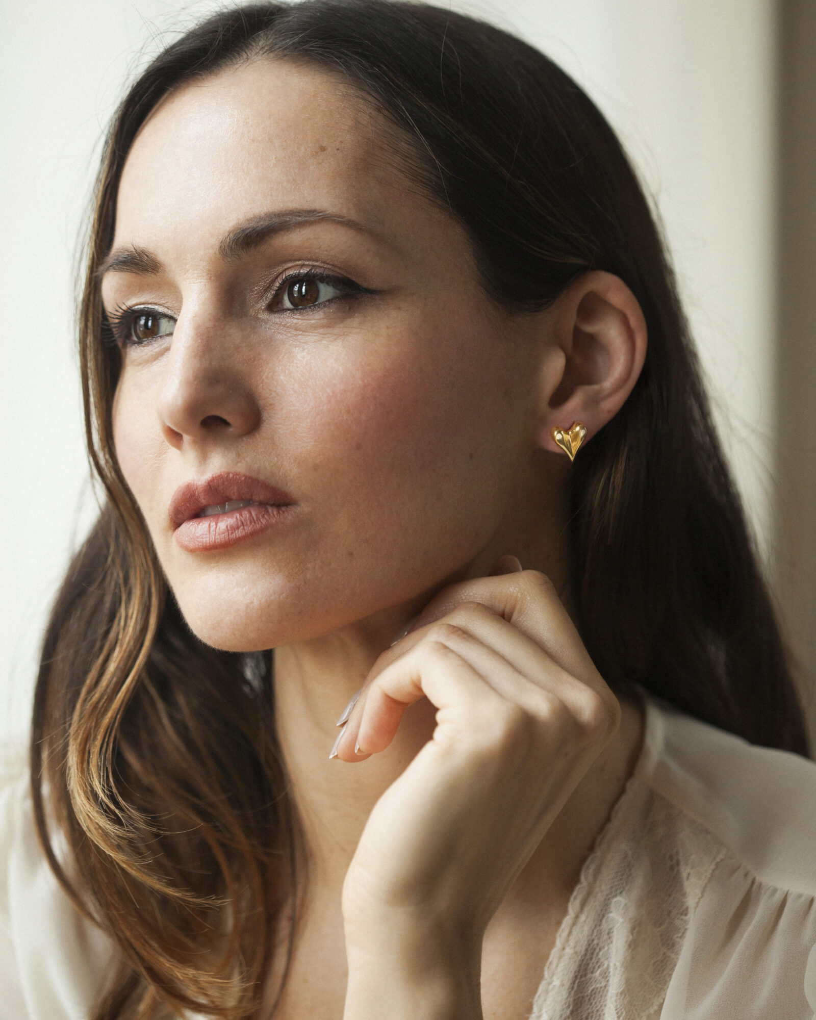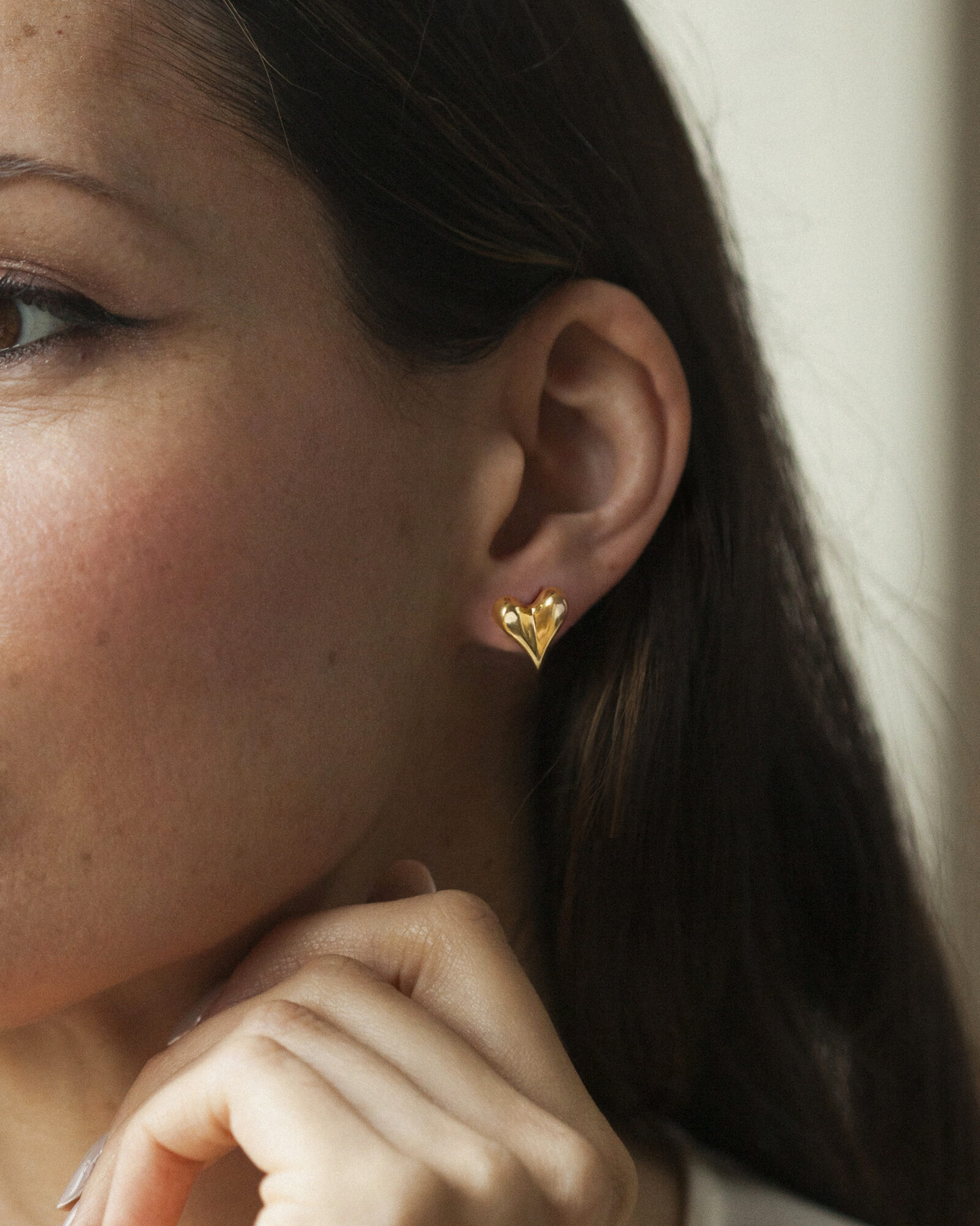 Our Stretched Heart Studs feature a unique, vertical profile that creates a flattering, lengthening effect on the ear. Designed for the minimalist who loves a story, these studs are forged in sterling silver and dipped in radiant gold. Lightweight and hypoallergenic, they are comfortable enough for all-day wear while remaining effortlessly chic.