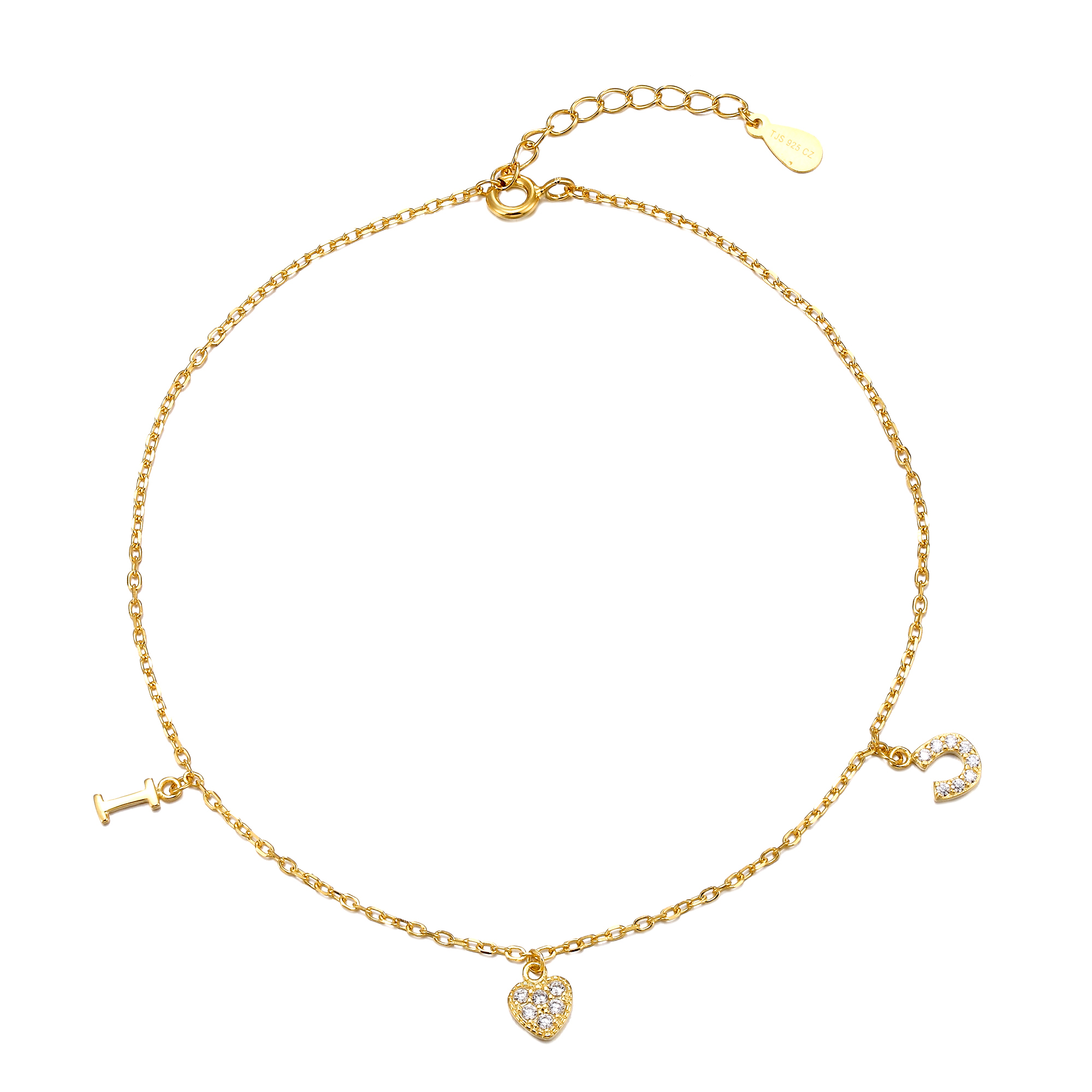 Show your loved one how much you care with this beautifully crafted ‘I love U’ anklet. With a subtle sparkle on each charm, this is perfect for everyday wear, or to wear on a special occasion. Comes with 1 inch extender chain. Available in 18ct gold plated, 18ct rose gold plated, and 925 sterling silver.