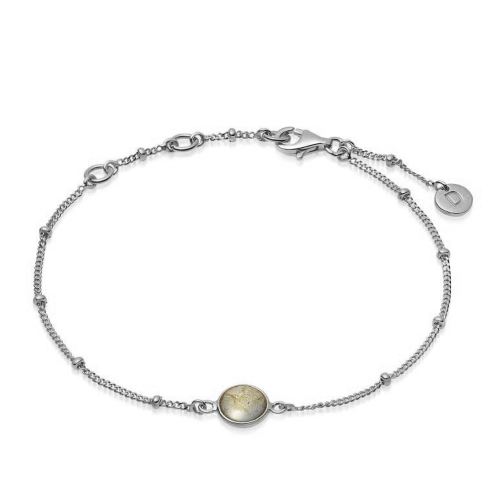 • Adorn your outfit with this gorgeous gold-plated bracelet from Daisy London. Consisting of an adjustable chain with a smooth labradorite stone resting in the centre, said to awaken one’s inner spirit and encourage us to be the best version of ourselves by filling us with confidence.