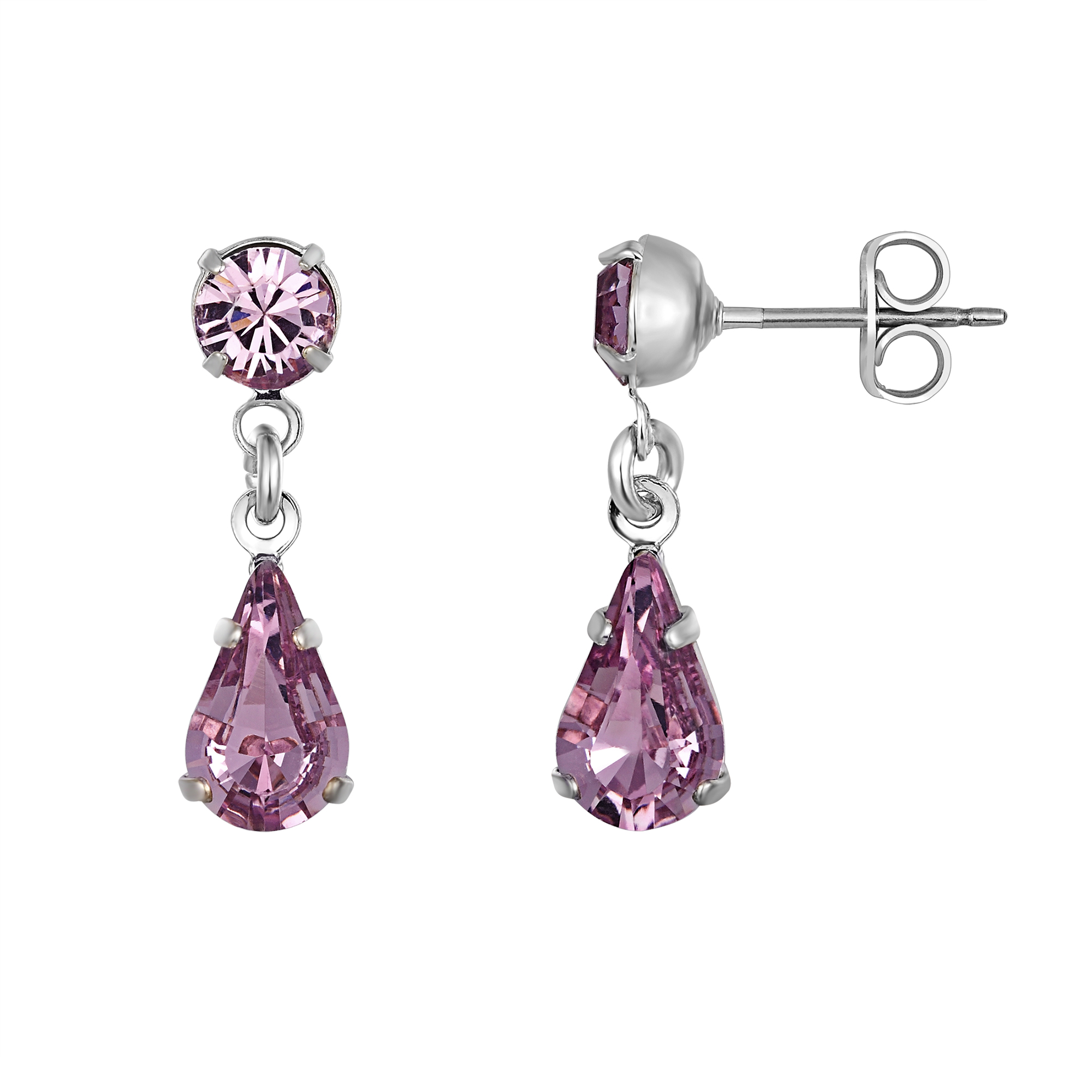 Drop jaws and bring the fun, with these elegant teardrop earrings with bezel detail. Available in Sterling Silver or 18ct Gold plate over brass and finished with Swarovski crystals – which are available in birthstone colours and more and sold as a pair.