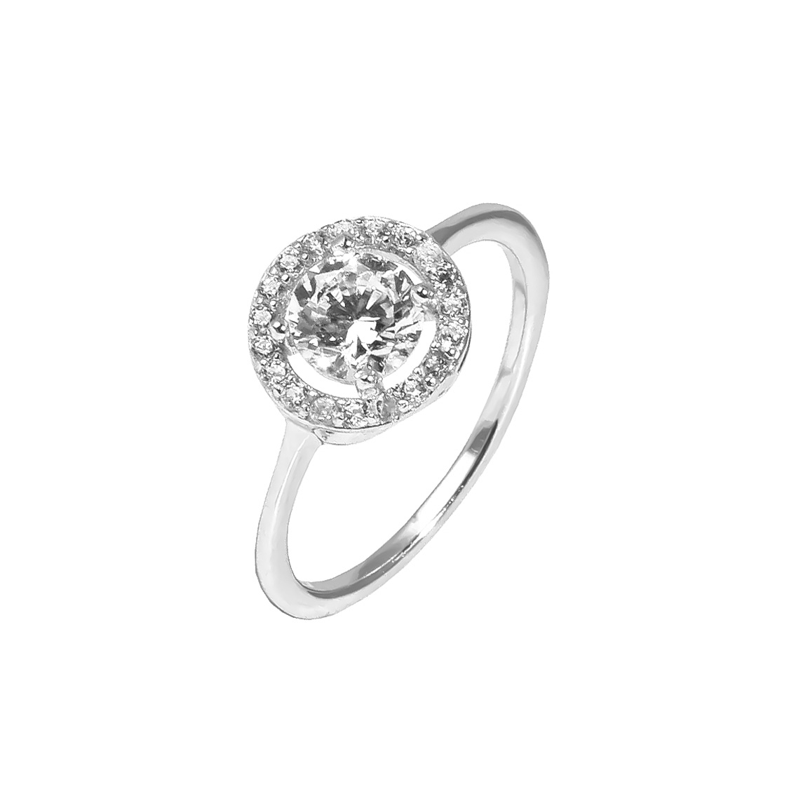 The round halo setting gives the ring its classic charm. The centre stone creates a bright focal point, while the fine halo adds softness and extra light around the edge. Together, they create a look that feels graceful rather than flashy. The slim sterling silver band keeps the whole piece clean and balanced, so the sparkle stays at the heart of the design. That makes the ring easy to pair with other jewellery, but it also gives it enough presence to stand on its own.