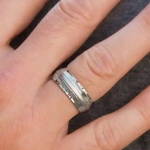 Men’s stainless steel grooved band ring.