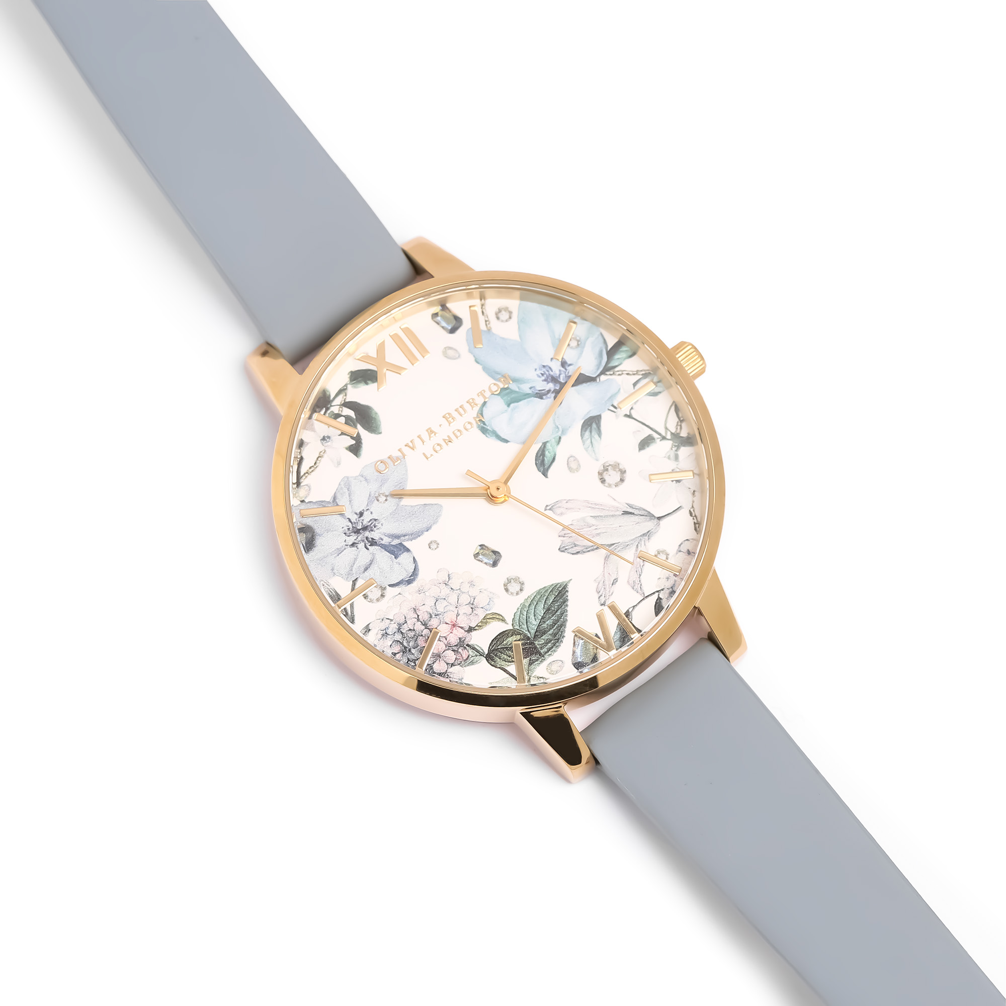• Olivia Burton is an incredible trendy Ladies watch from Bejewelled Florals collection.Case material is Gold Ion-plated Steel and the Silver dial gives the watch that unique look.