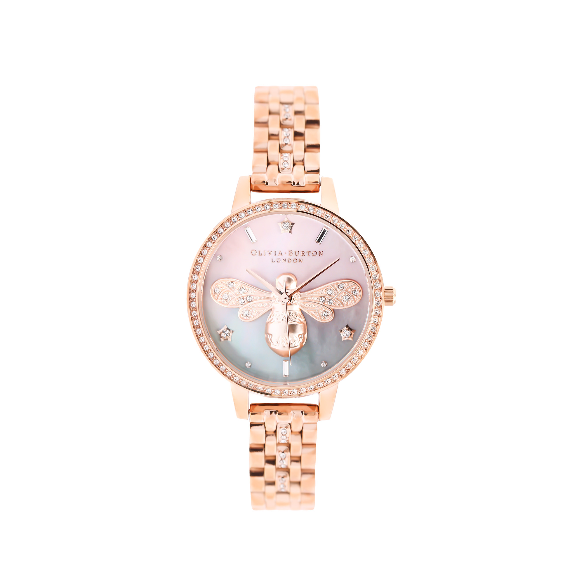 If you like sparkle, you’re in the right place.Olivia Burton’s Sparkle Bee styles feature glittering crystals which catch the light as you move.Centre stage is a Sparkle Bee encrusted with crystals and framed by crystal markers on an ombre Demi dial of pale pink fading into sage.All topped off with a sparkle bezel and bracelet, adding some serious shine to the classic casing and bracelet strap.Need we say more?