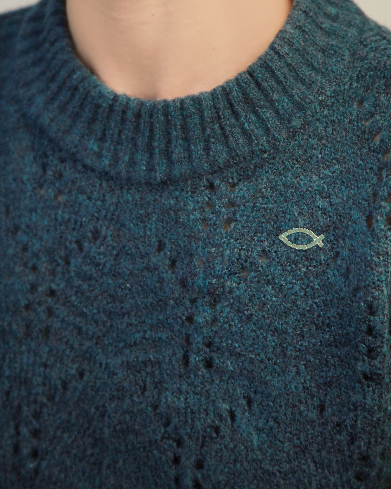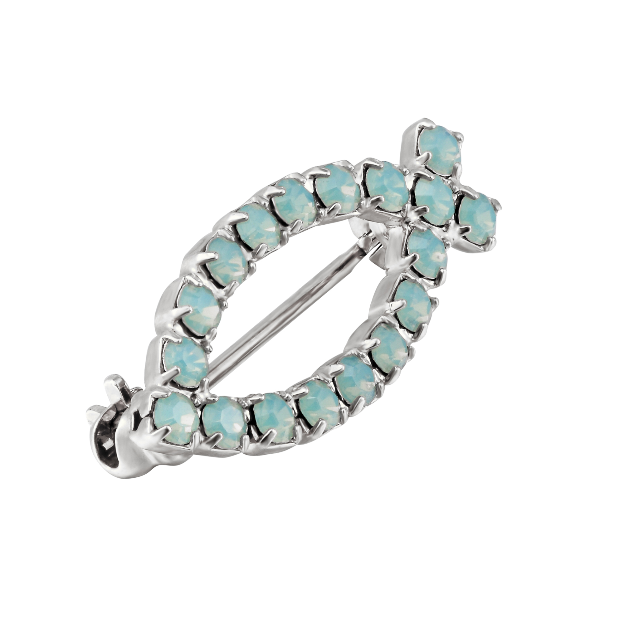 Pacific Opal Swarovski crystal ichthus fish brooch. Available in bright silver plate, 18ct yellow gold plate or 18ct rose gold plate.