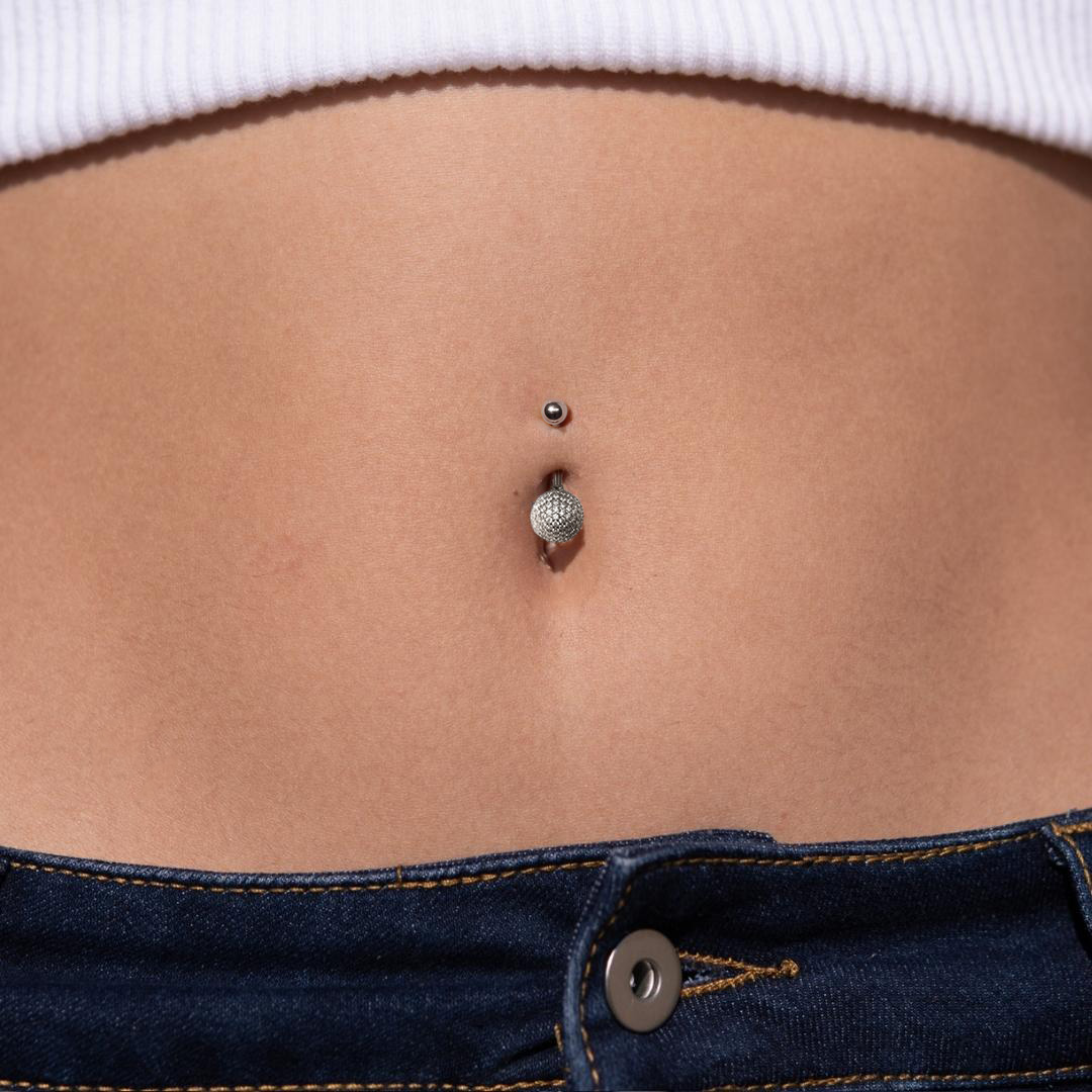 • Pavé Crystal Ball Cubic Zirconia Belly Button Bar