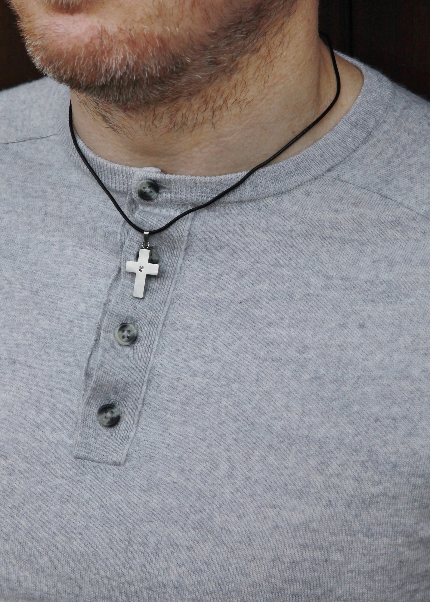 Available on 18″ or 20″ leather cord or a 20″ or 22″ stainless steel curb chain.