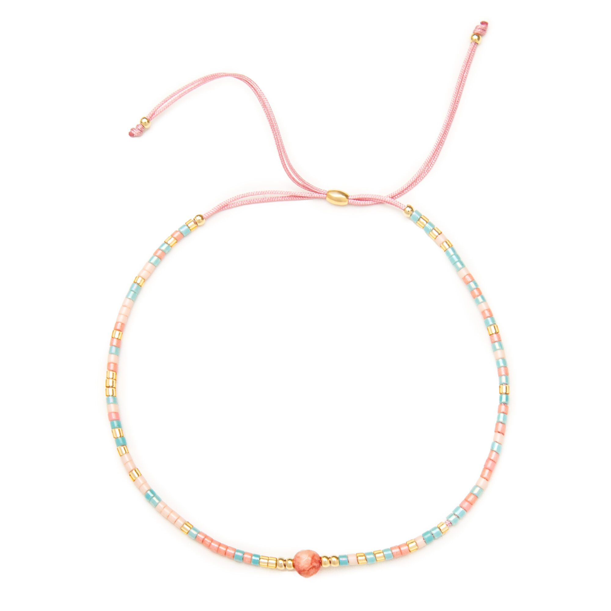 The Rainbow bead adjustable bracelet is a colorful and versatile piece of jewellery designed to add a touch of vibrancy and positivity to your style. This bracelet features a string of small, multicolored beads in the order of a rainbow, typically red, orange, yellow, green, blue, indigo, and violet, though variations may occur. The beads are strung together on an adjustable cord or chain, allowing you to customize the bracelet’s fit to your wrist.