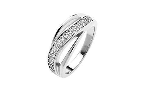 • Rhodium-plated sterling silver twisted triple band ring with a double channel of CZ stones.