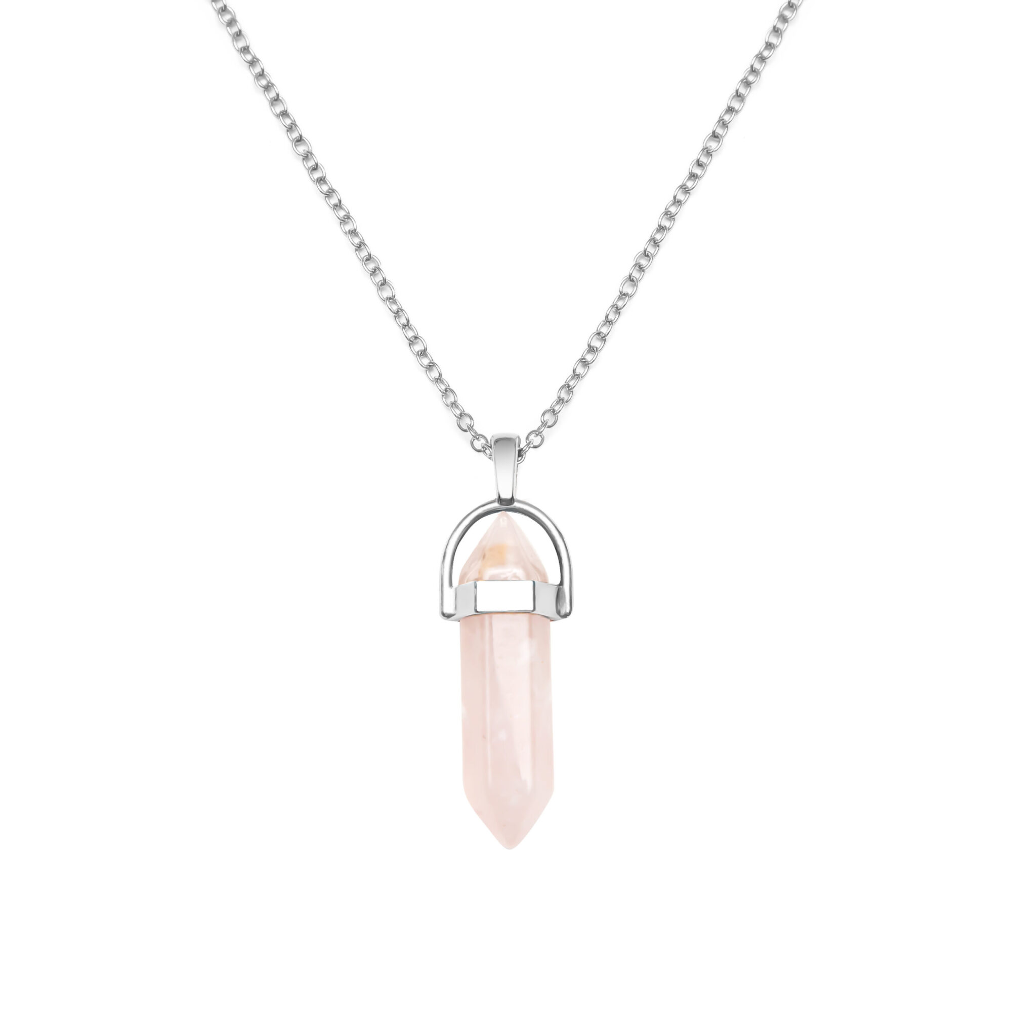Rose Quartz Silver Plated Crystal Drop Charm Necklace