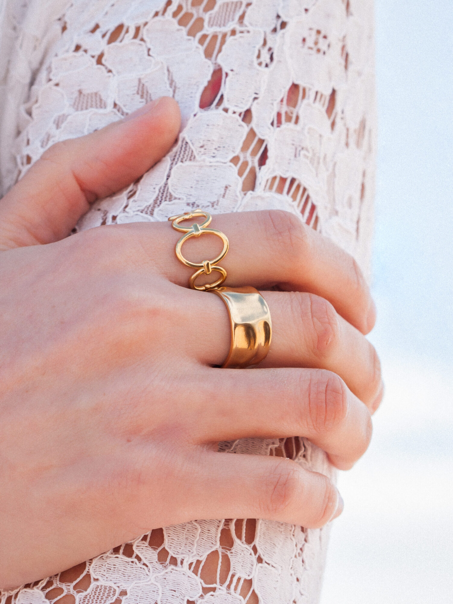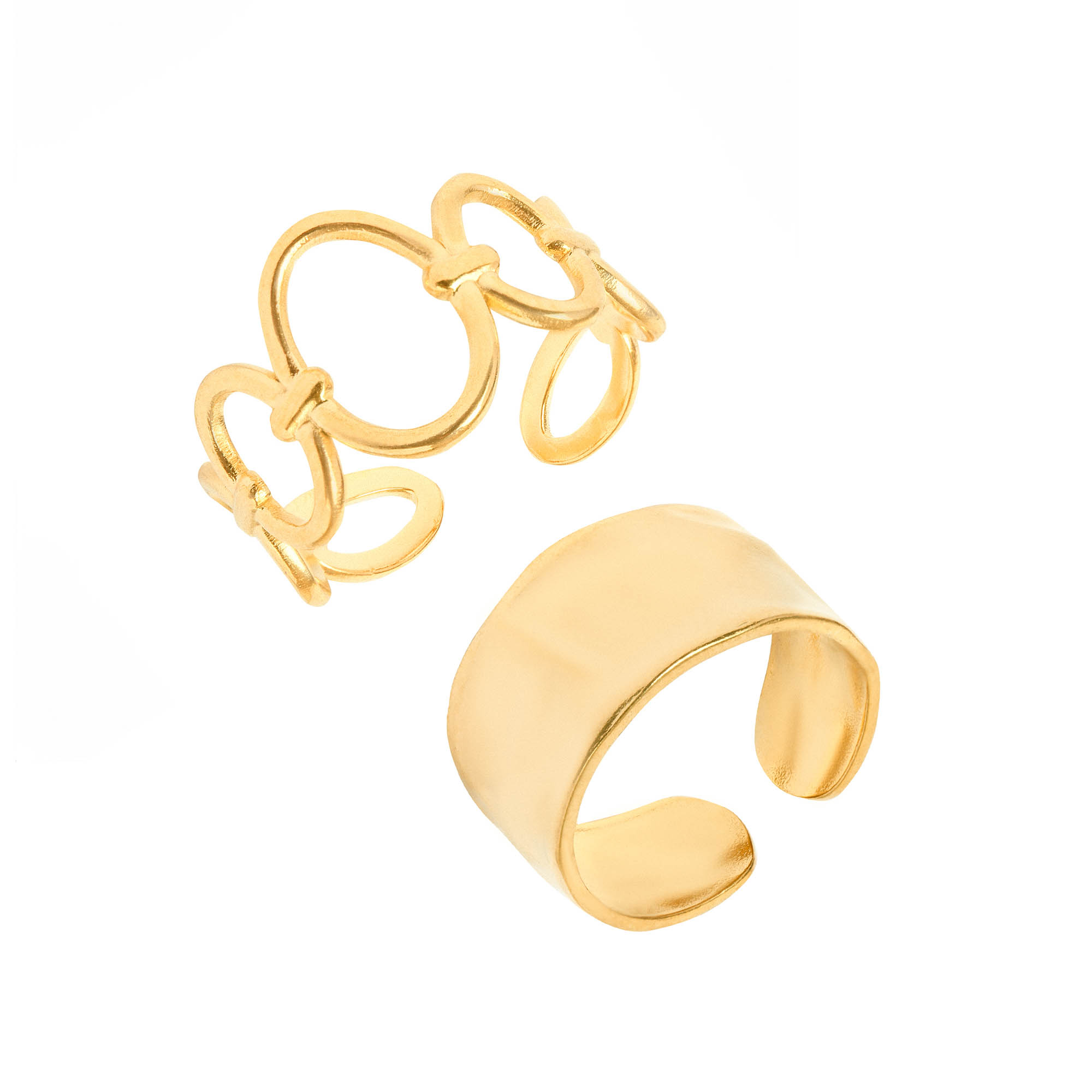 This Set of 2 Chunky Rings is designed to make a bold, stylish statement. Crafted from high-quality materials, each ring features a substantial, eye-catching design that commands attention. Wear them individually for a modern touch or stacked together for extra impact. The chunky silhouette adds a contemporary edge to any outfit, while the versatile style complements a wide range of looks. Elevate your accessory collection with this dynamic duo, perfect for adding personality and sophistication to any ensemble.