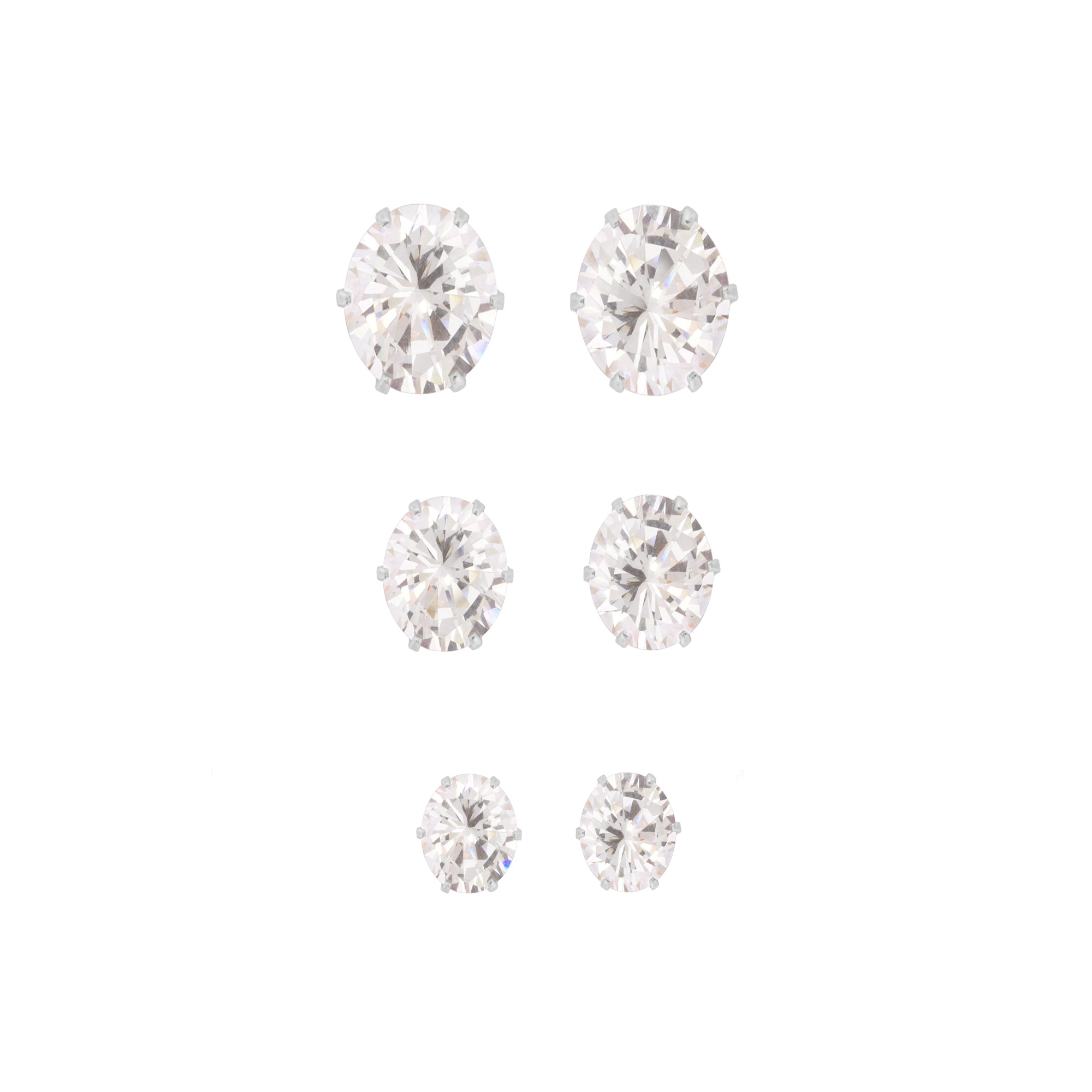 This set includes 3 pairs of classic cubic zirconia studs earrings that can be worn every day. Each pair are made from sterling silver and fix to the ear with a simple butterfly. Included in this set a pairs of 3mm, 4mm and 5mm studs to suit every occasion. They even come supplied in a pretty gift box making them a perfect gift for all the special people in your life.