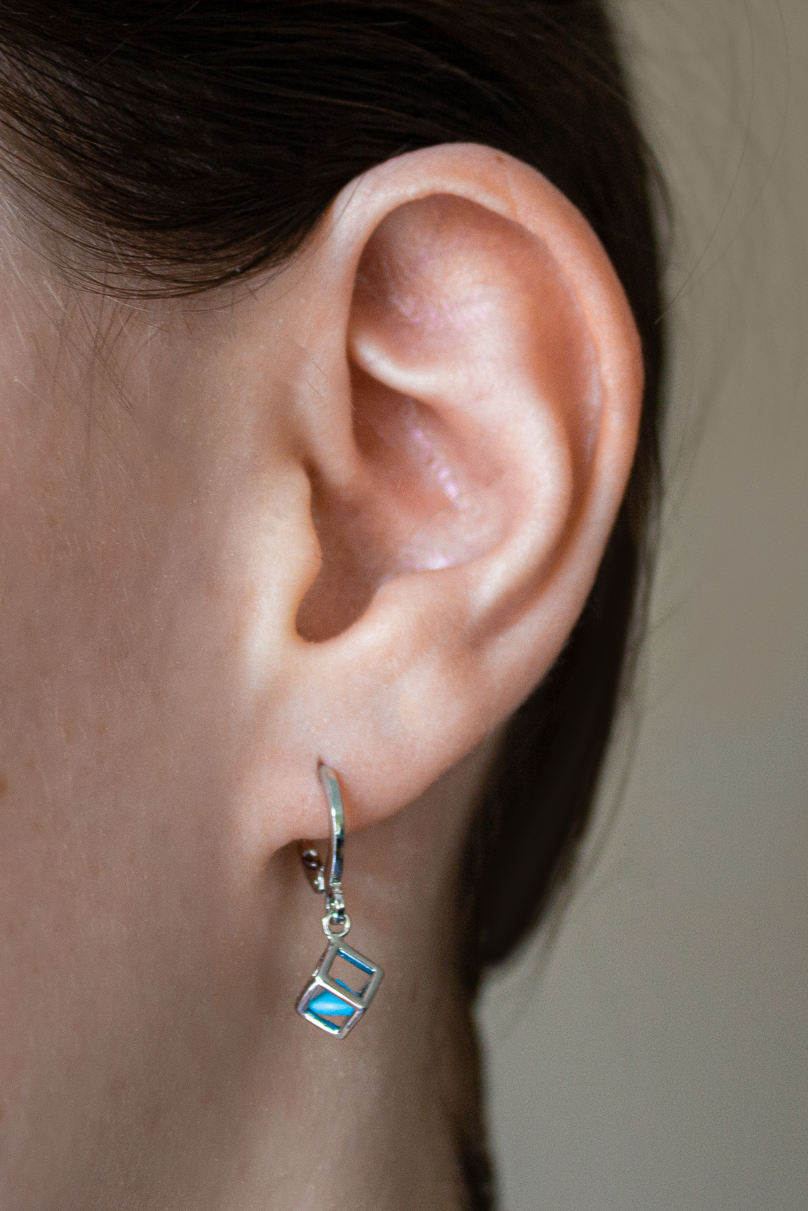 These pretty drop earrings are a super cute way to add a touch of glam to your look. In a silver plated finish, these are a fun and pretty way to style with your outfit. With a pretty aquamarine stone detailing, these add a subtle touch of colour to your look.
