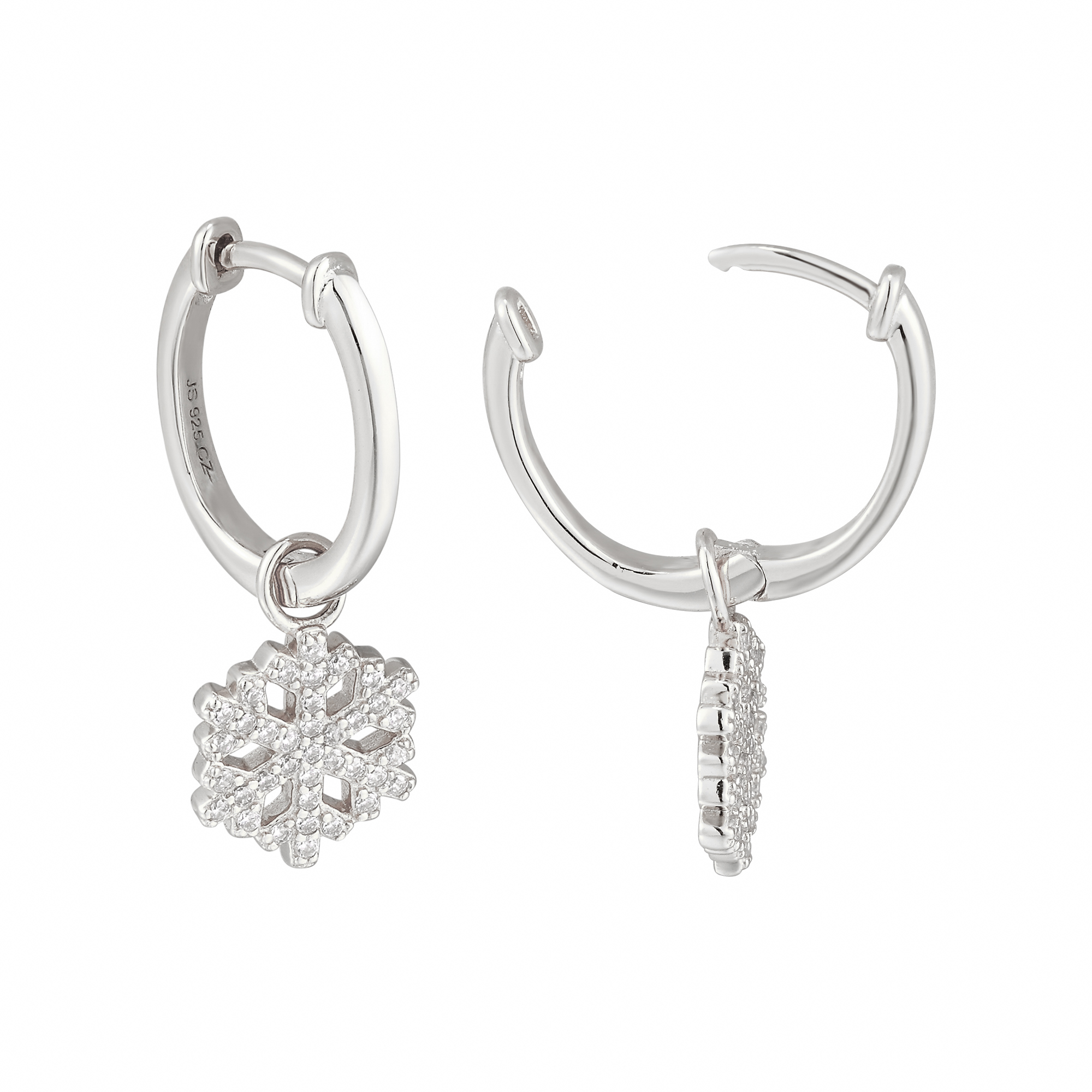 A stunning Christmas accessory, these beautifully crafted snowflake cz crystal charm huggies will catch the light at every party. Available in 18ct gold plated, 18ct rose gold plated, and 925 sterling silver.