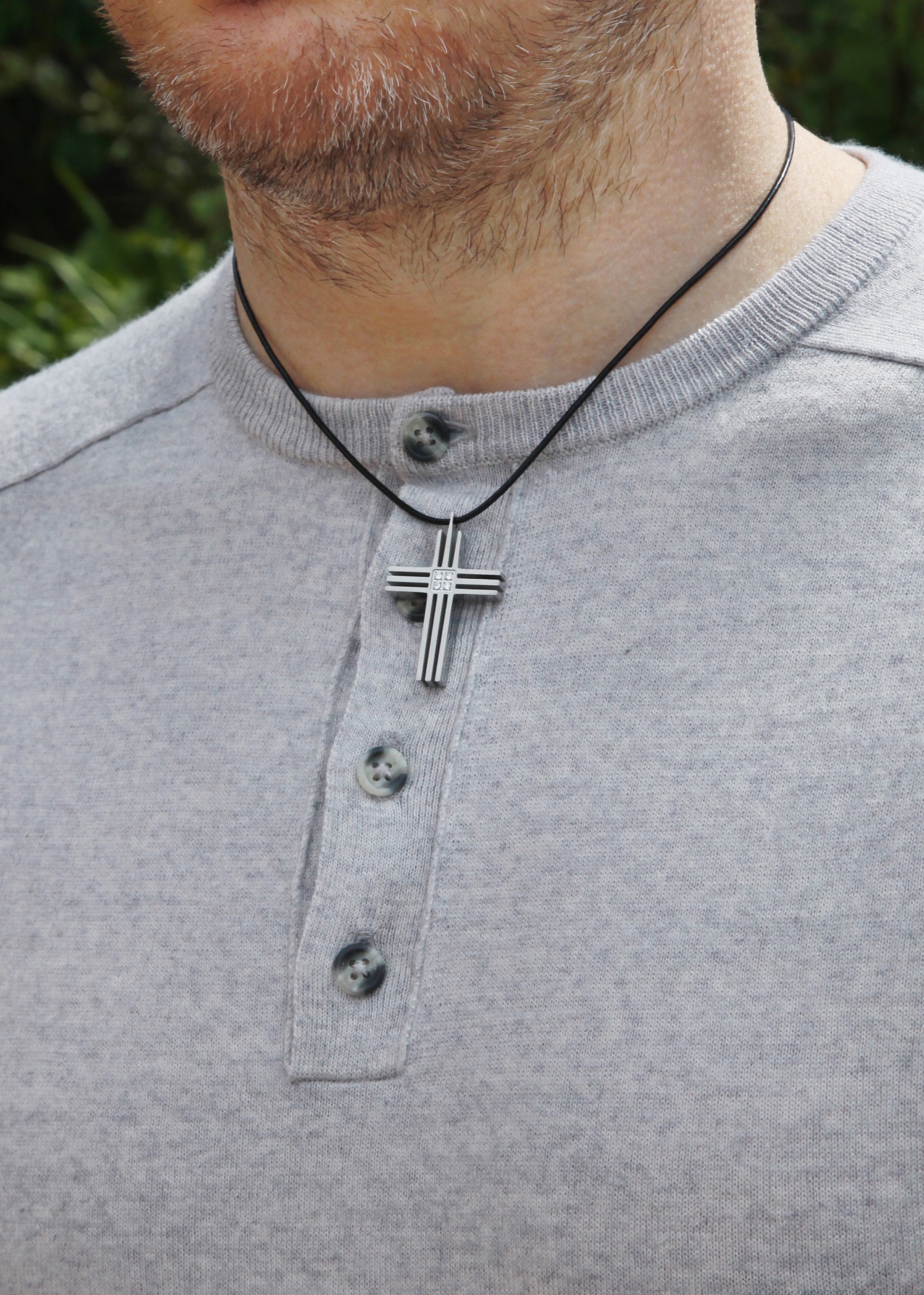 Available on 18″ or 20″ leather cord or a 20″ or 22″ stainless steel curb chain