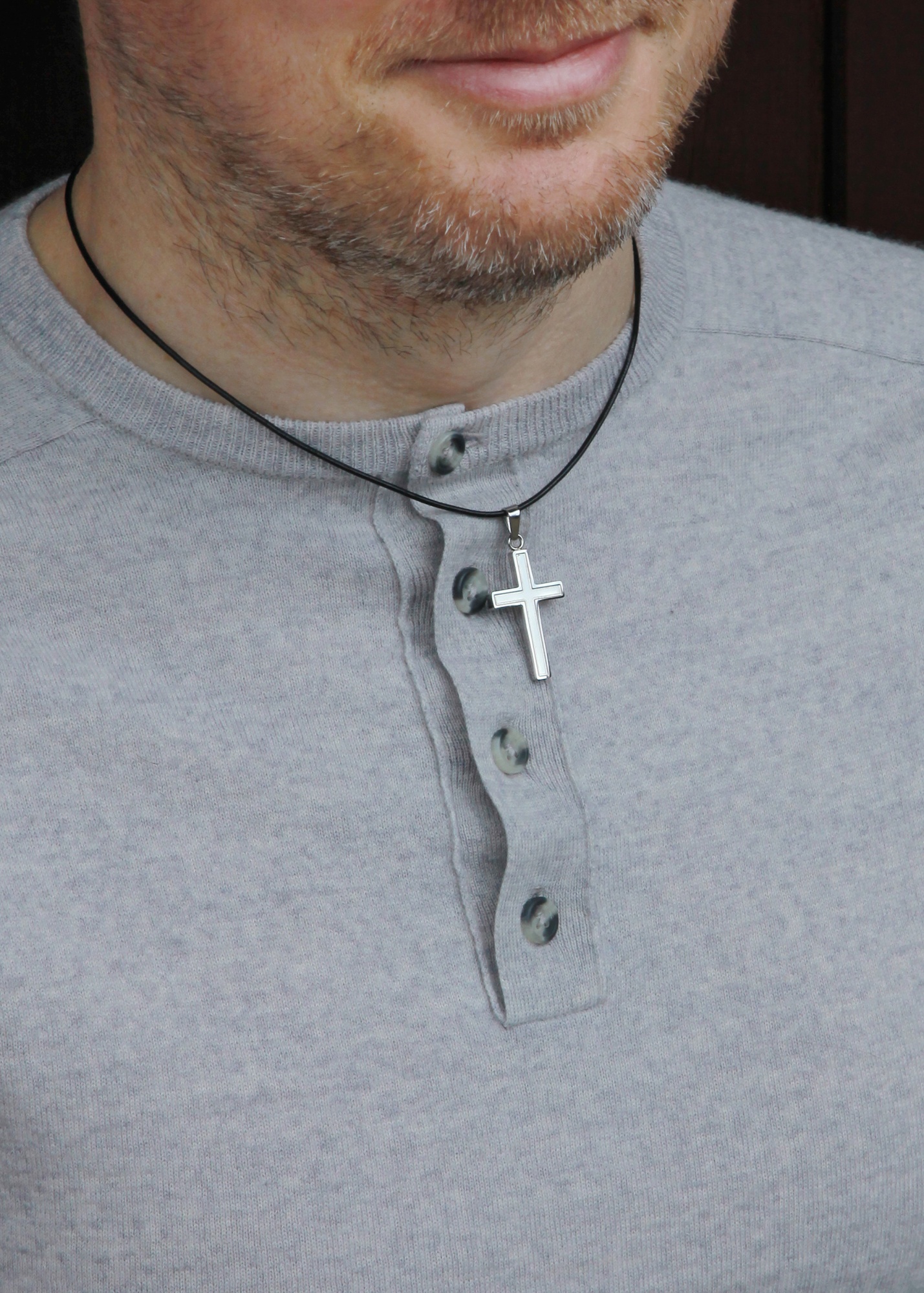 The cross pendant measures 43mm (h) x 20mm (w)
